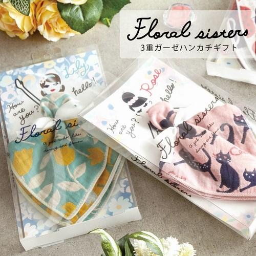 貰って嬉しい、Floral sisters 3重ガーゼハンカチギフト。