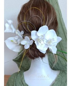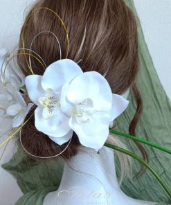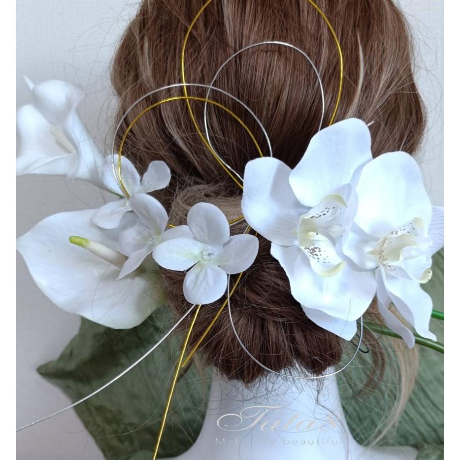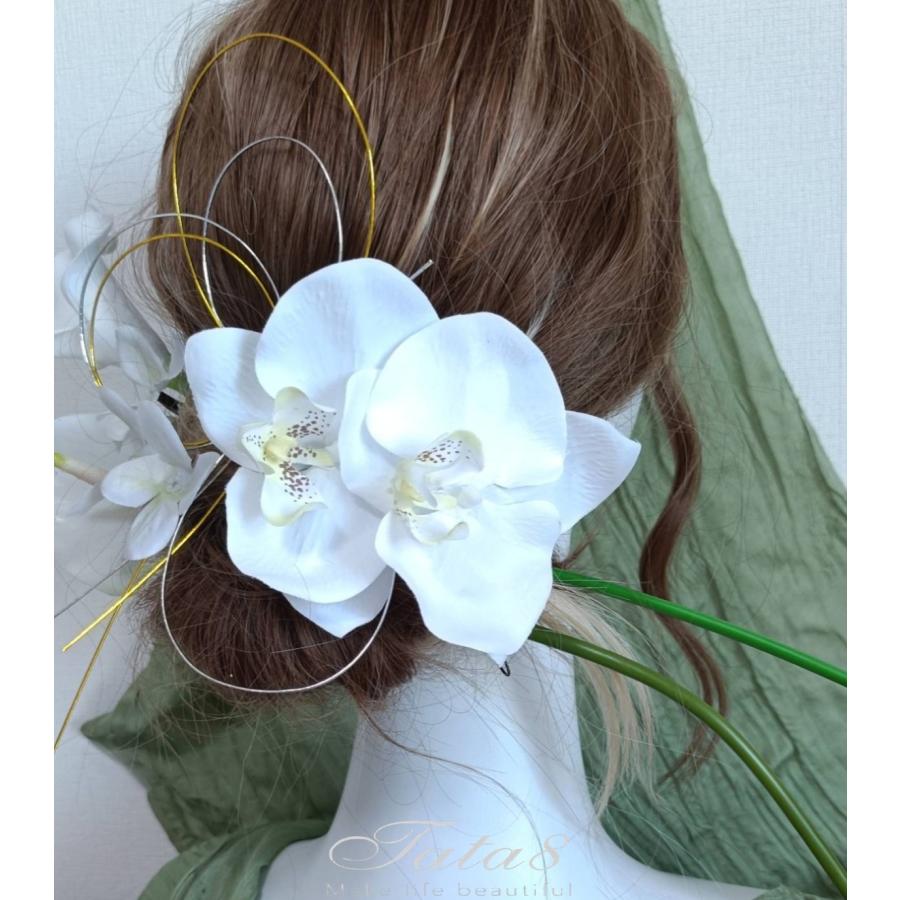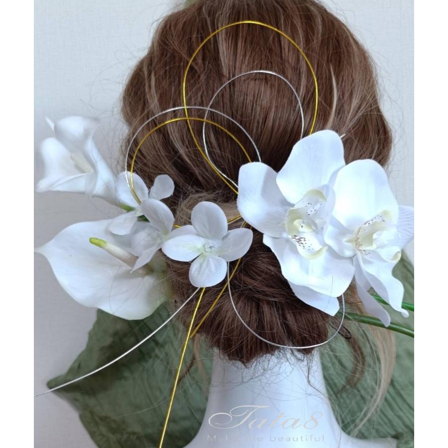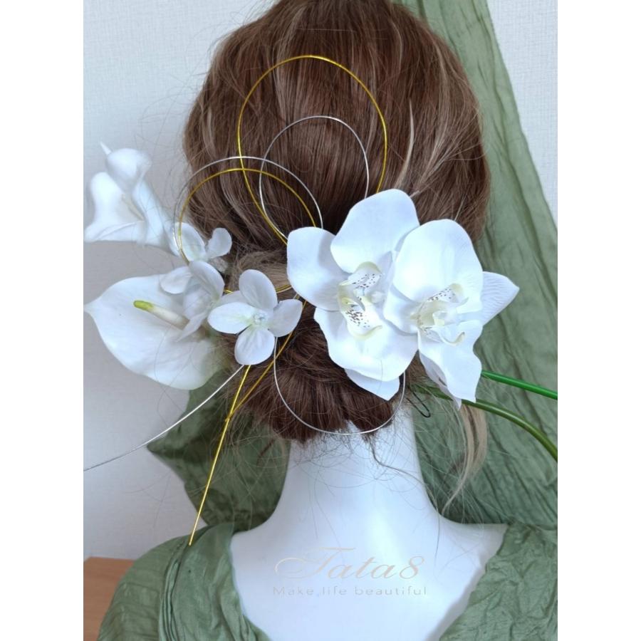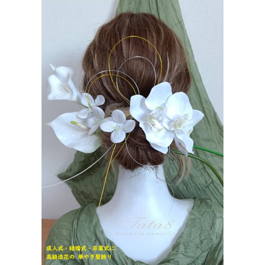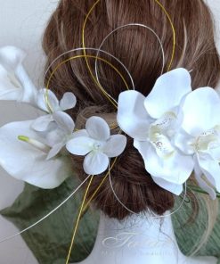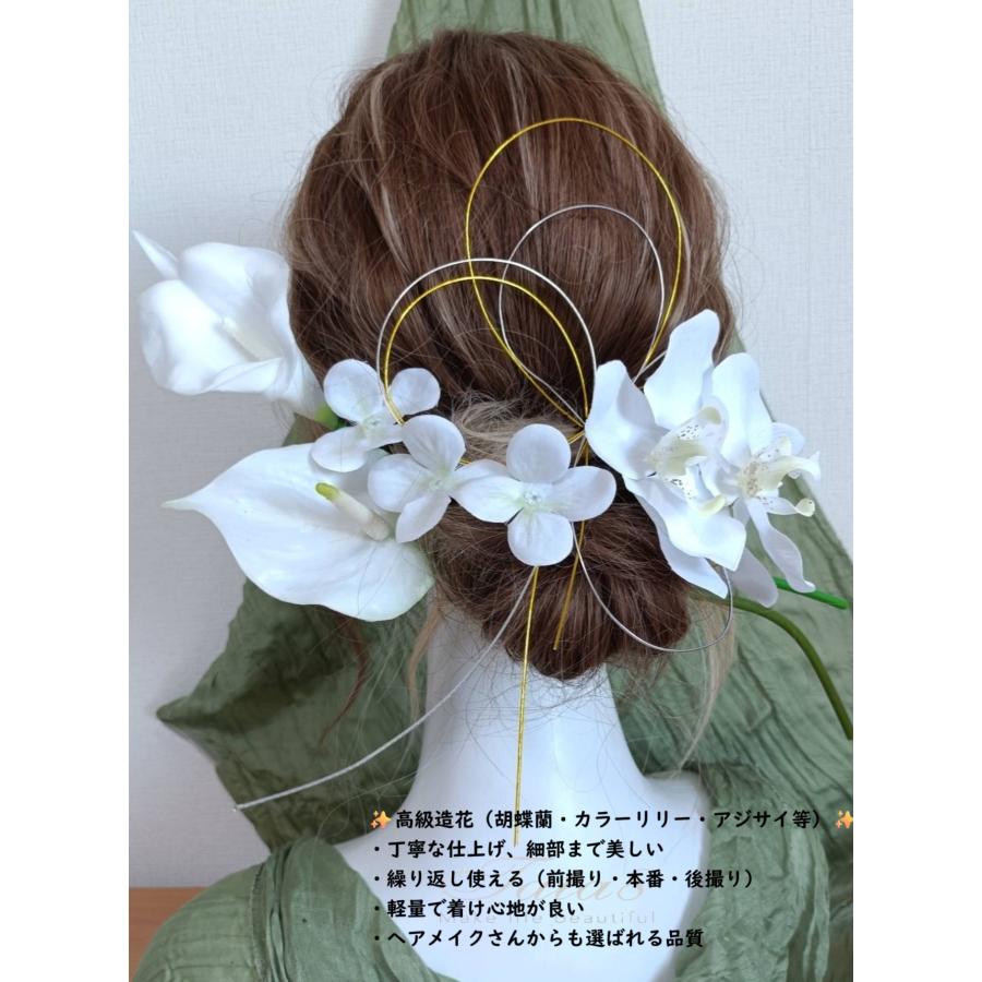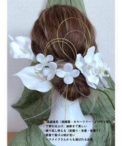 2タイプ 華麗髪飾り 成人式 振袖 卒業式 袴 結婚式 フォト婚 ウェディング 前後撮り 和装洋装|豪華造花胡蝶蘭 水引き ヘッドドレス|着物 白ゴールド950304h