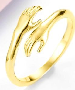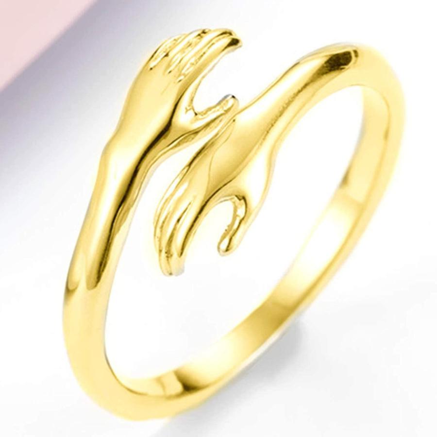 2個のゴールドカップルハグリングラブハグオープンアジャスタブルリングセット