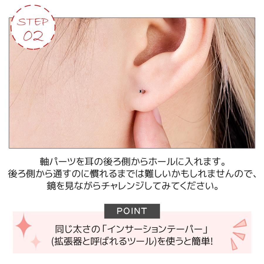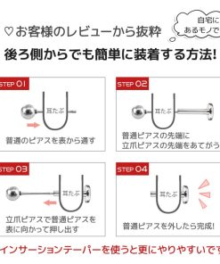 耳たぶ・イヤーロブ・軟骨・トラガス・ヘリックス・インナーコンク・アウターコンクなど様々な部位に着用出来ます。