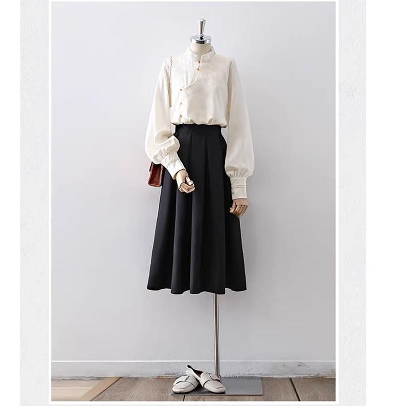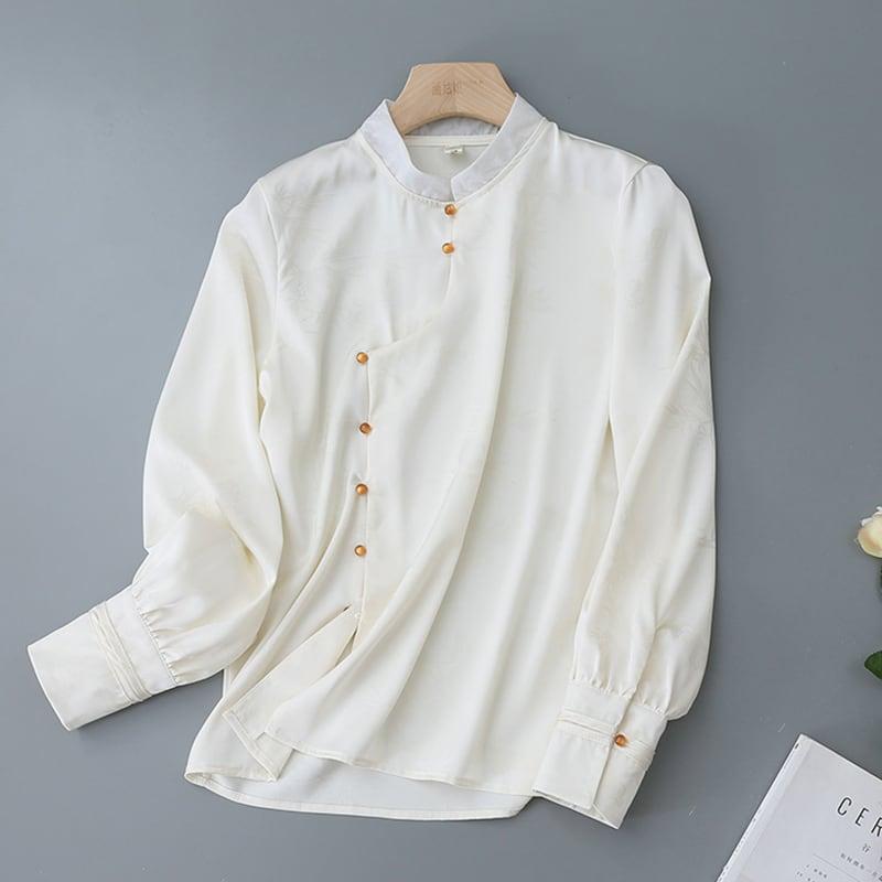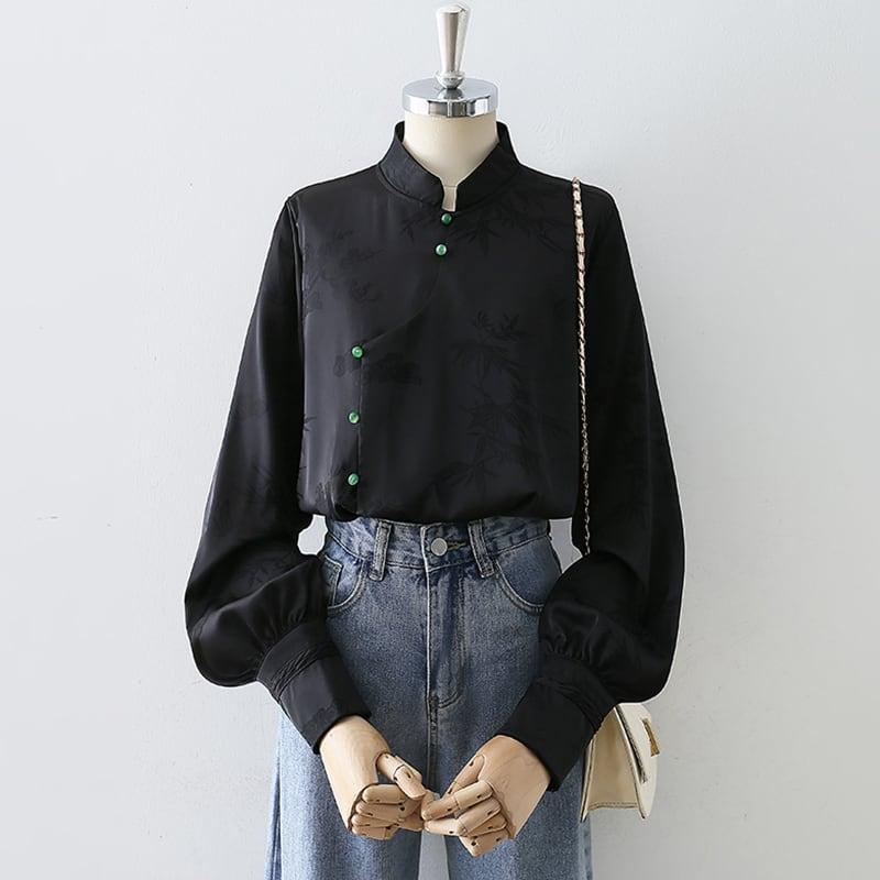 2color シャツ 長袖シャツ 中華服 シンプル 合わせやすい