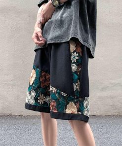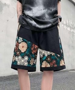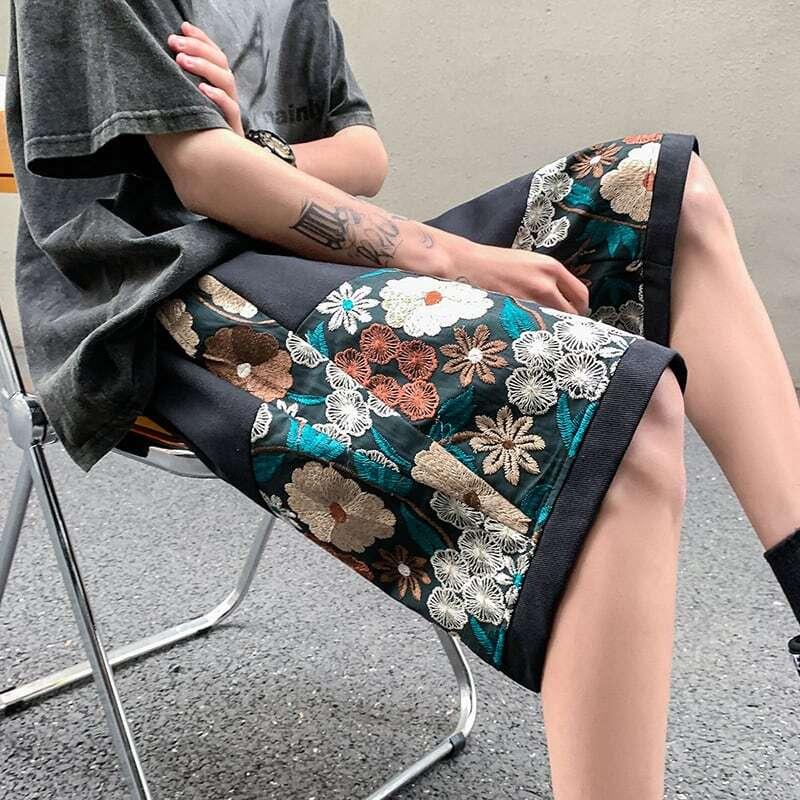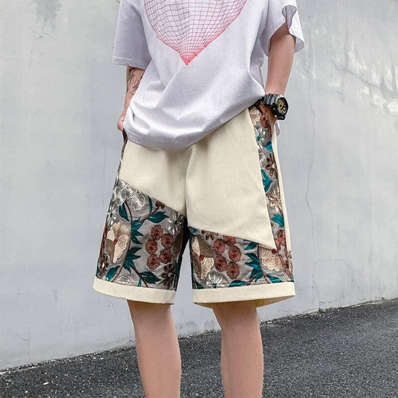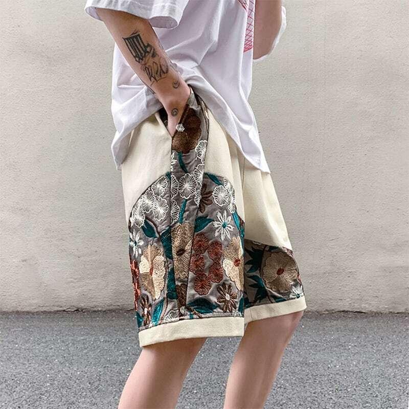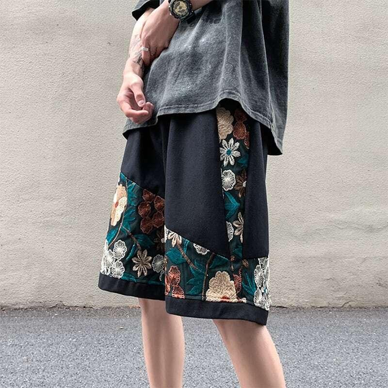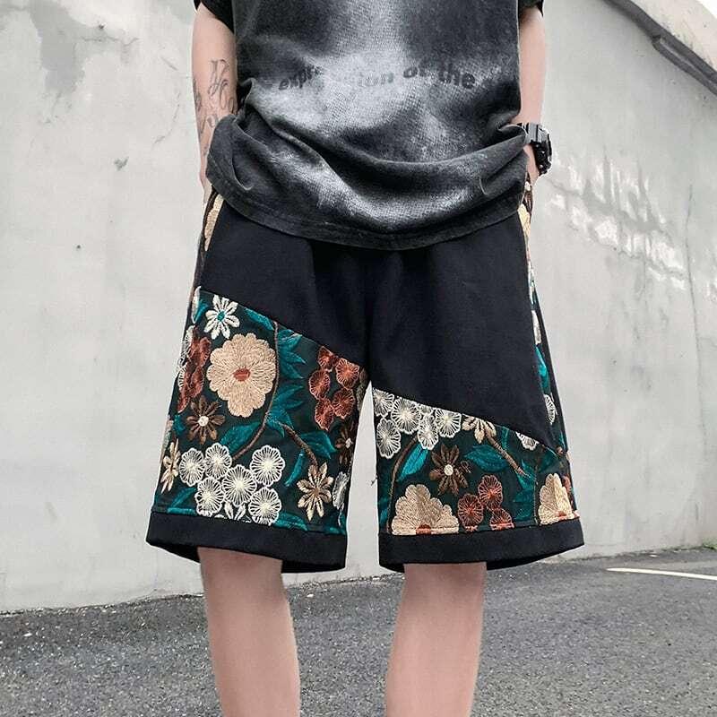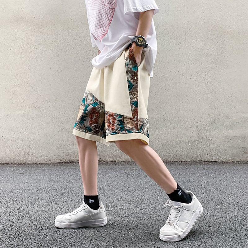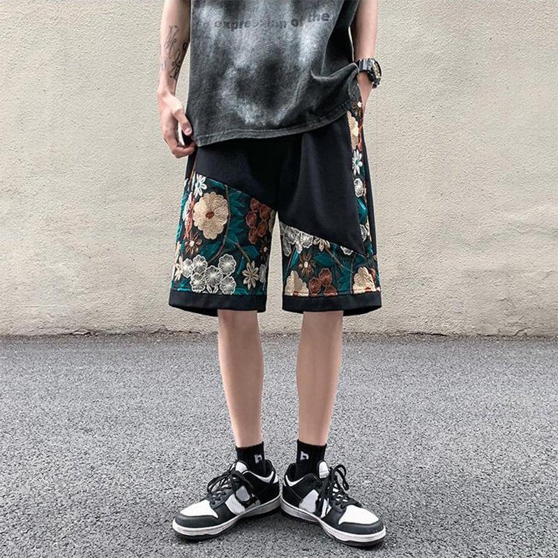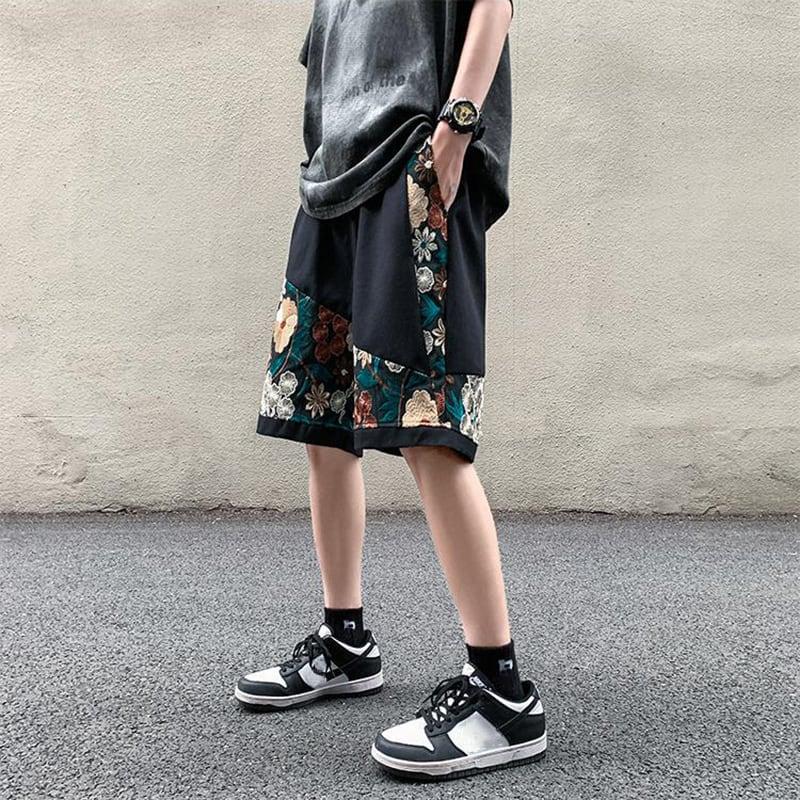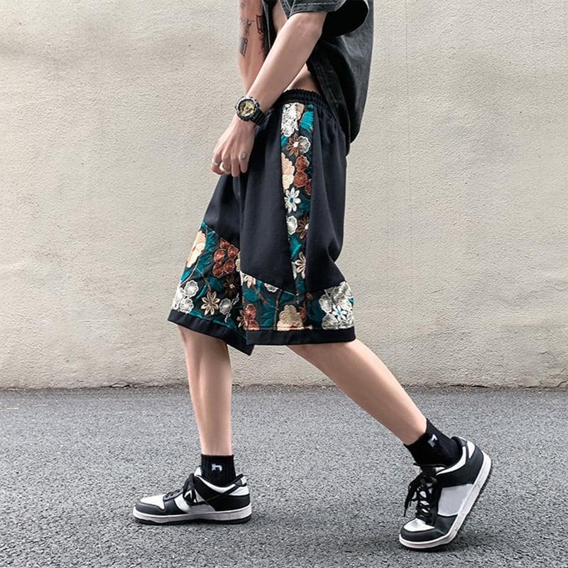 2color ショートパンツ 夏服 刺繍 花柄 男女兼用 大きいサイズ カジュアル