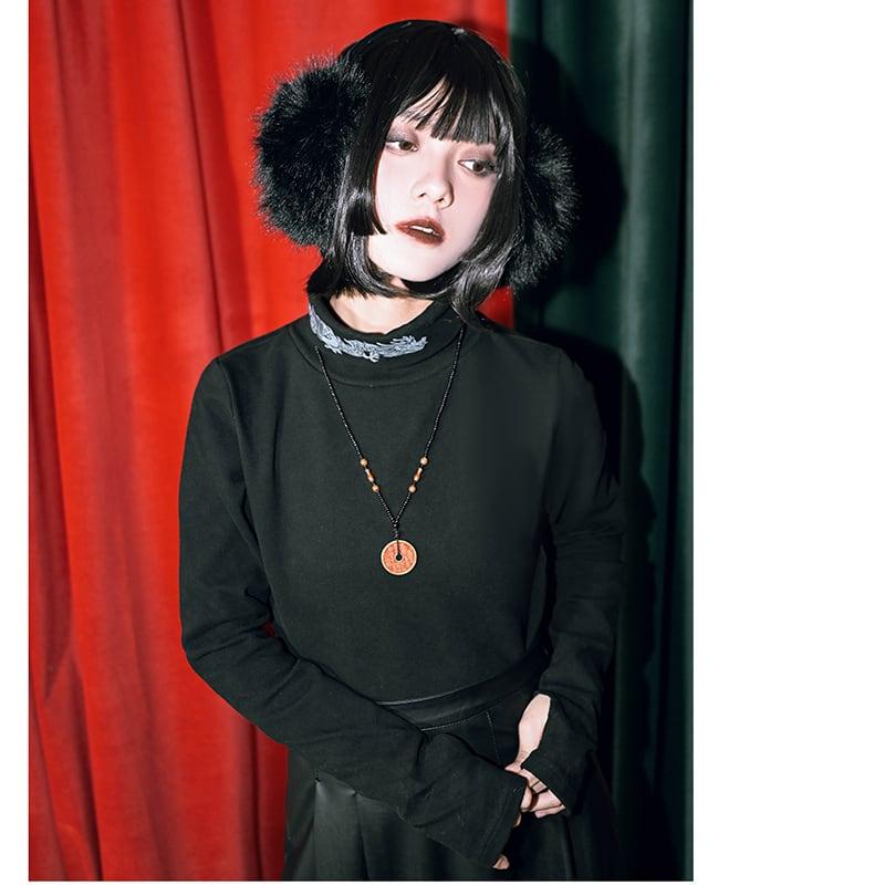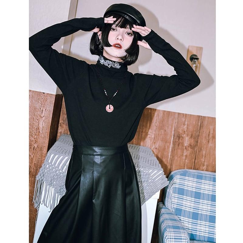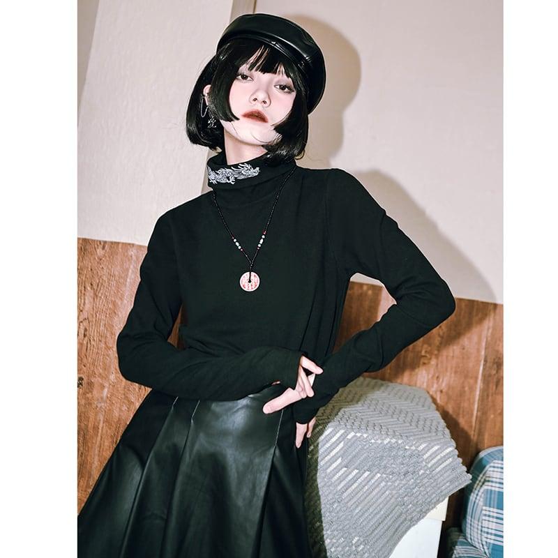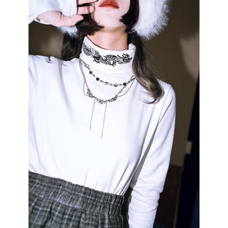 2color スウェット トップス ハイネック プリント 龍 龍紋