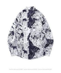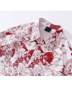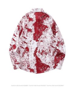 2color トップス 長袖シャツ 男女兼用 メンズ プリント レッド ブラック