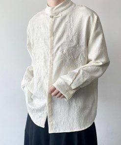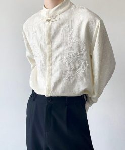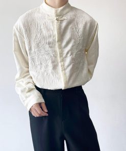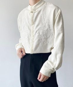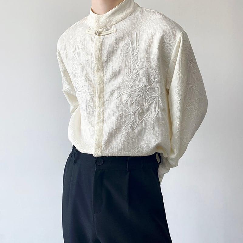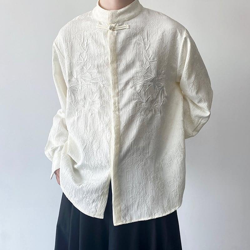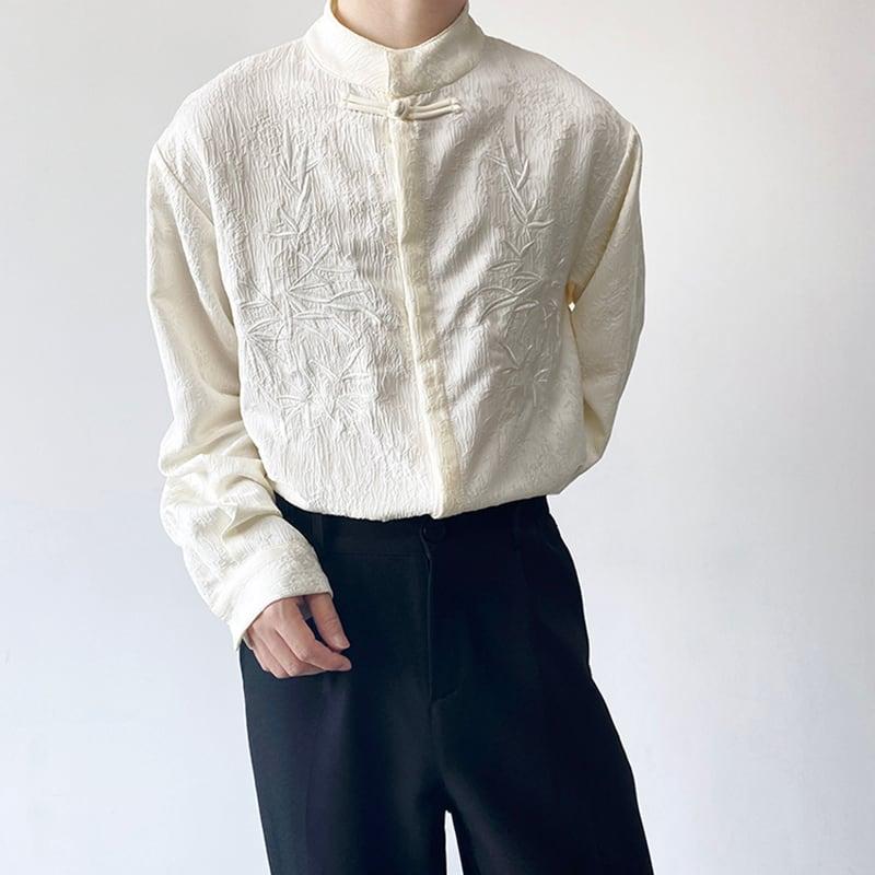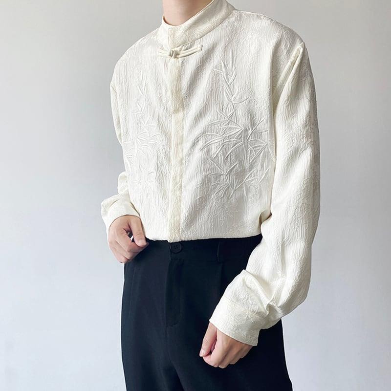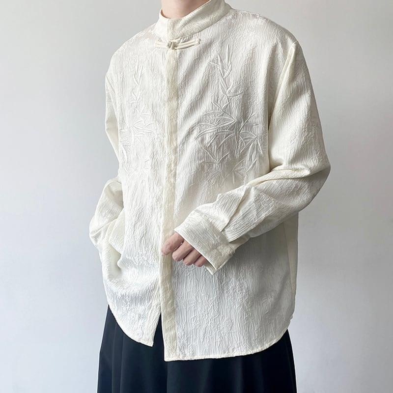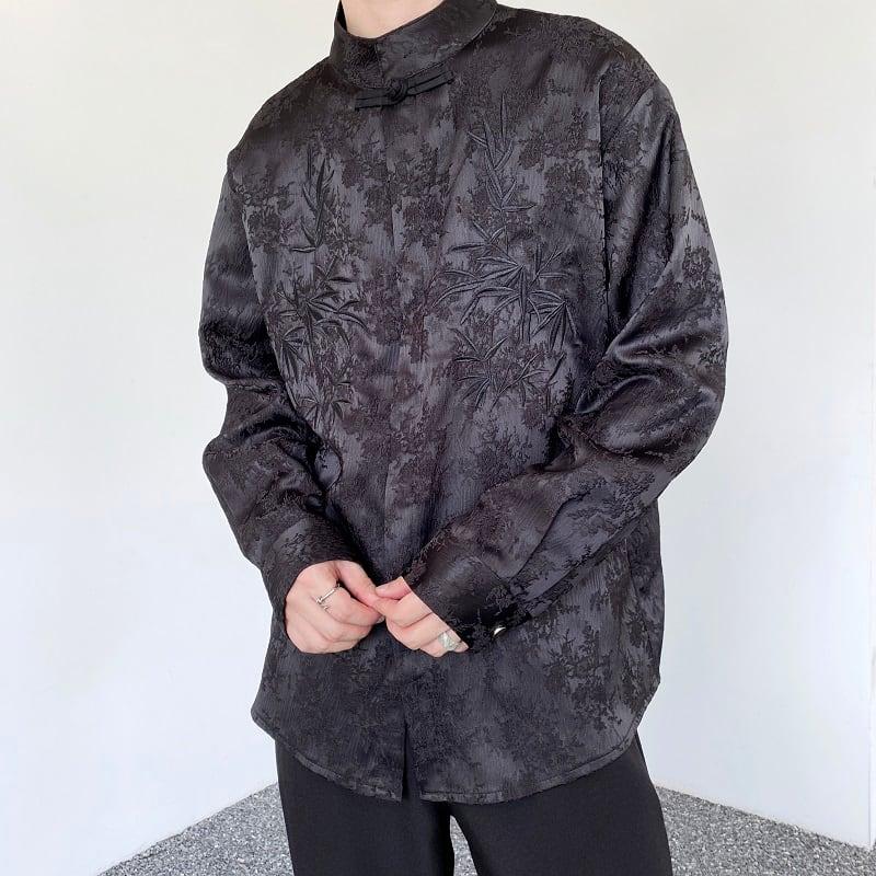 2color トップス 長袖シャツ 男女兼用 メンズ 竹柄 M L XL カジュアル