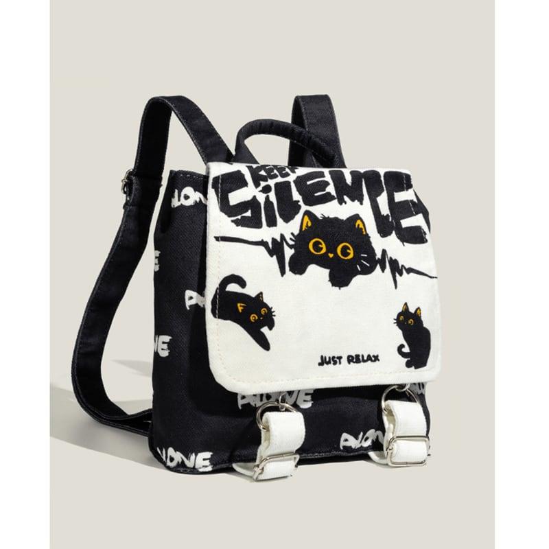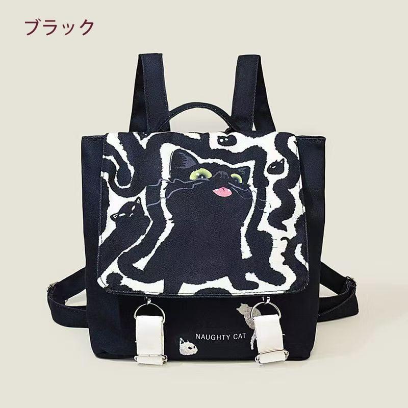2color リュック リュックサック 猫柄 猫 ねこ ネコ 可愛い ブラック 黒白