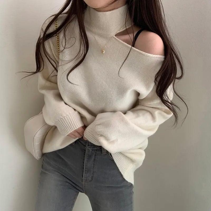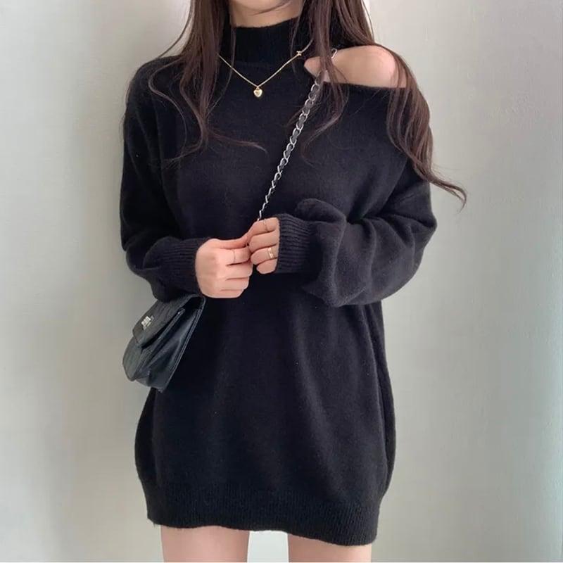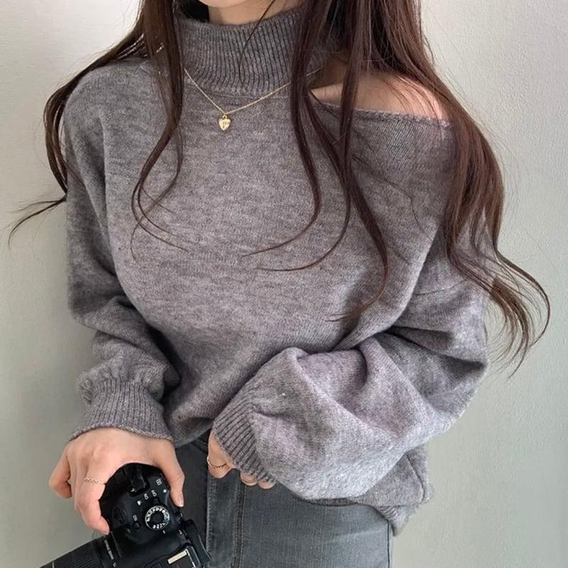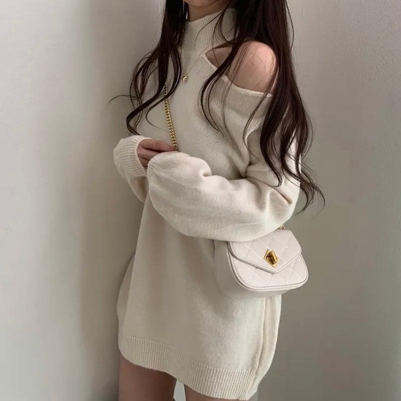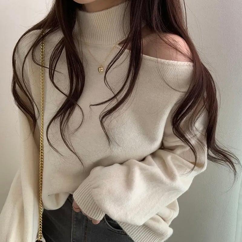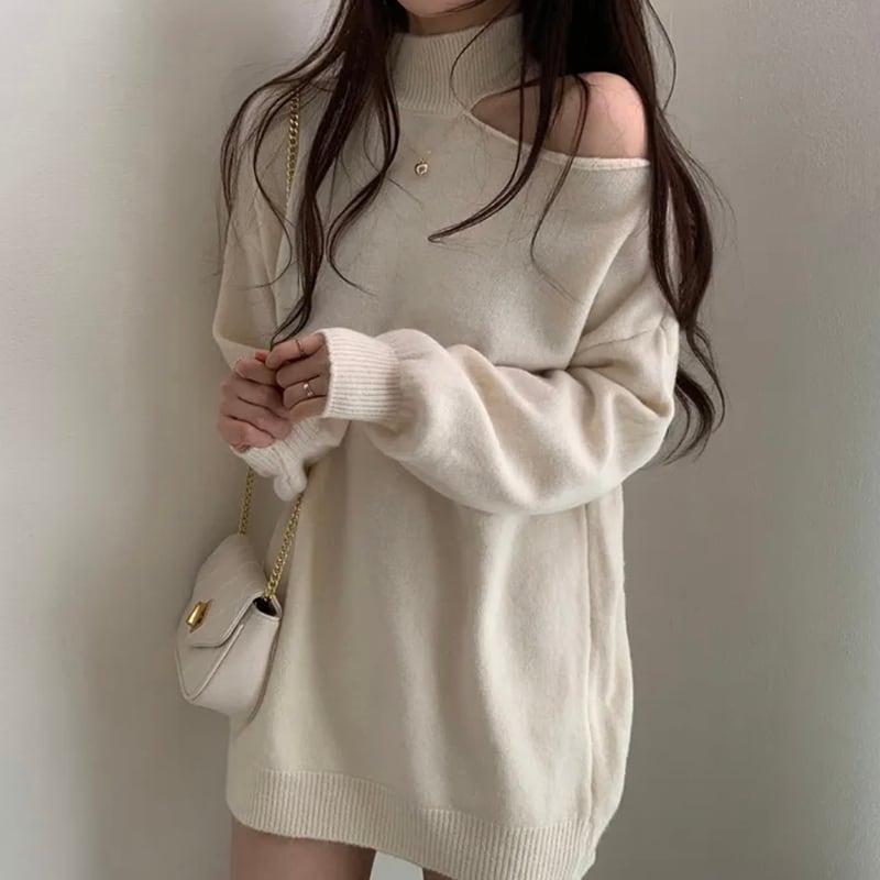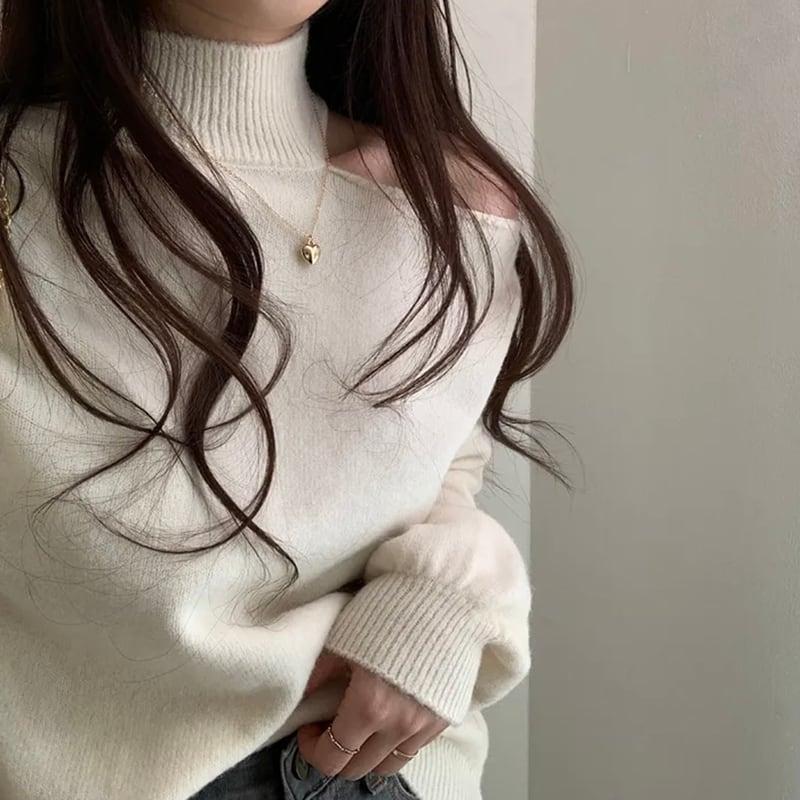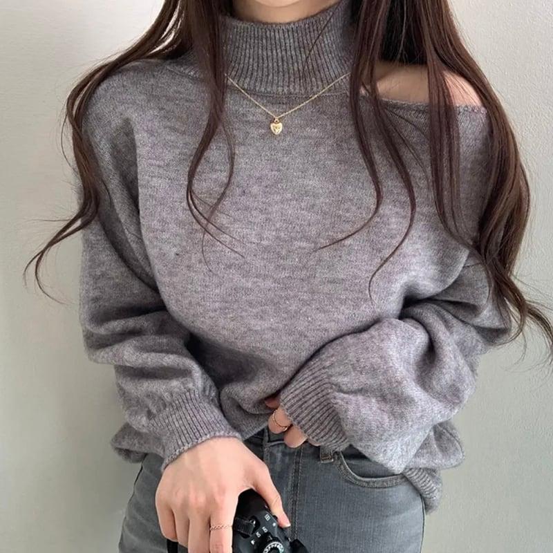 3color ニットトップス ショート丈 レディース グレー ベージュ コーヒー色