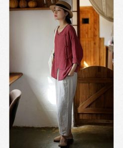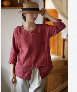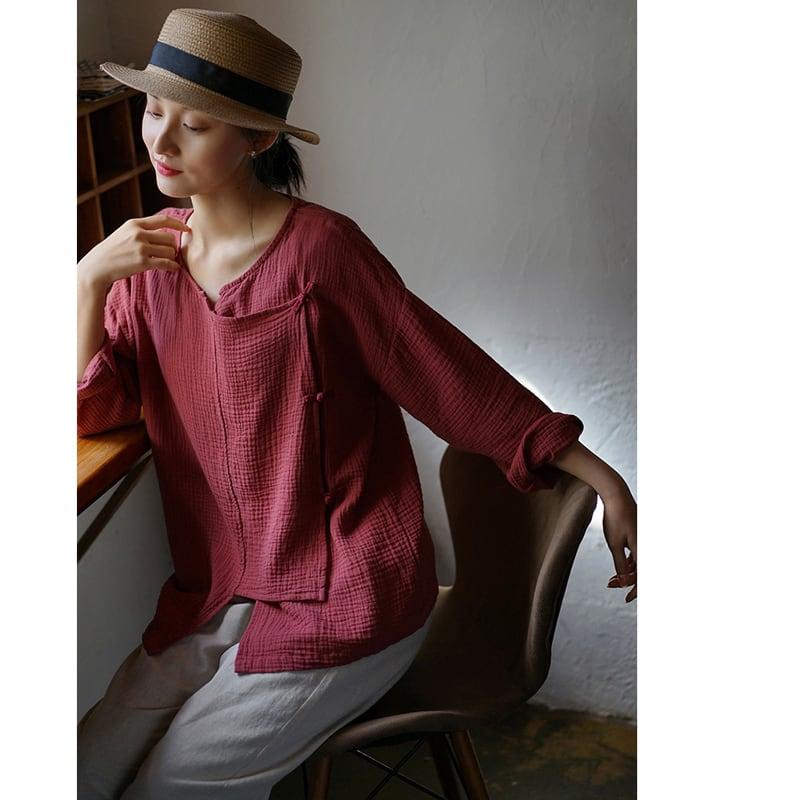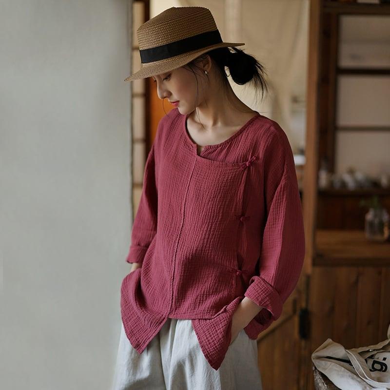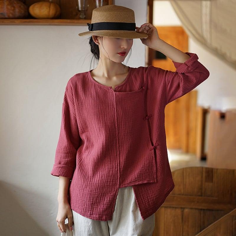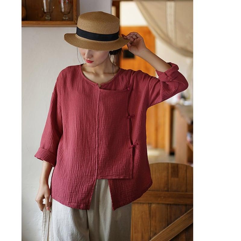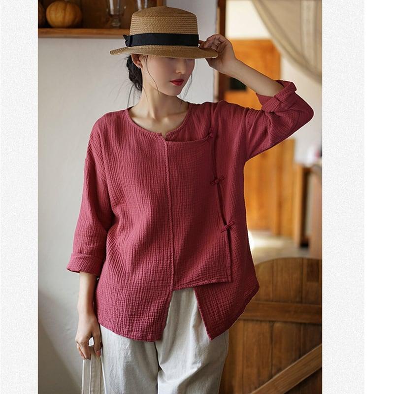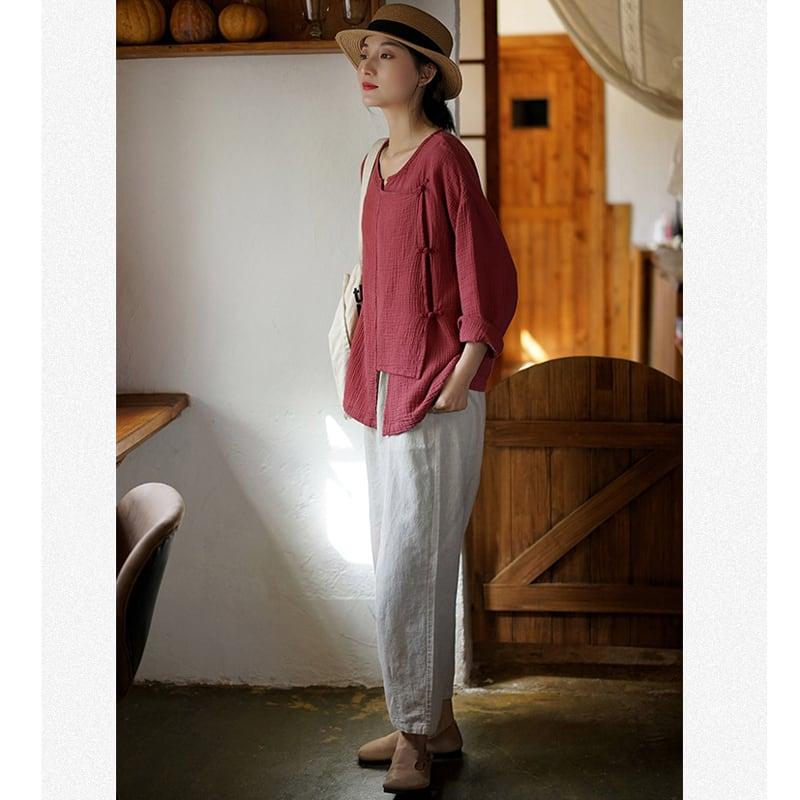 4color 気質アップ シャツ 改良唐装 レトロ 緑 赤 白