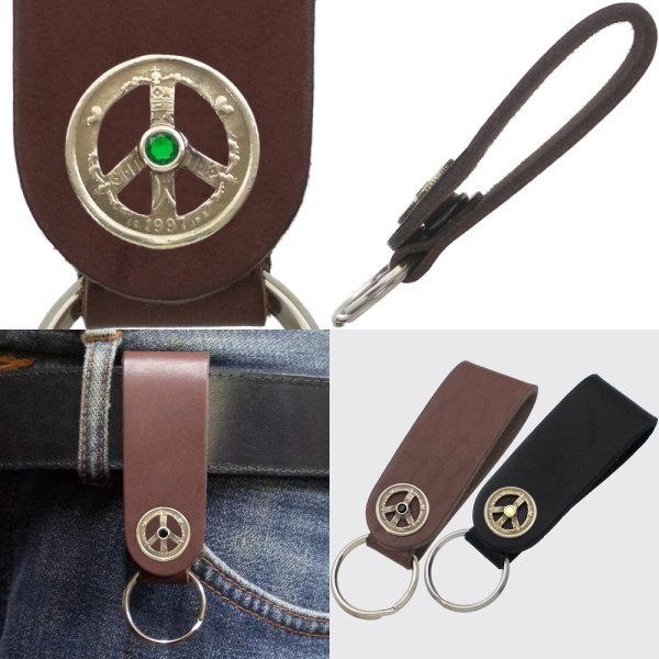 北欧の高福祉で国民の幸福感の高さでも知られるデンマーク、その「幸せを呼ぶコイン」と呼ばれるデンマーククローネをシルバーに燻しを施しセラミックゴールドコーティング、ブラックとブラウンレザーのシックなループキーホルダーに合せた落ち着きのある組み合わせ。