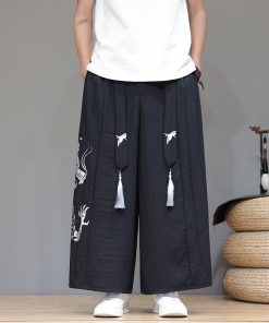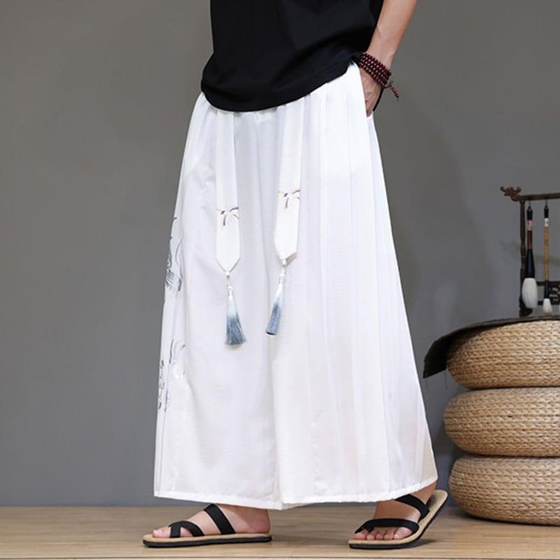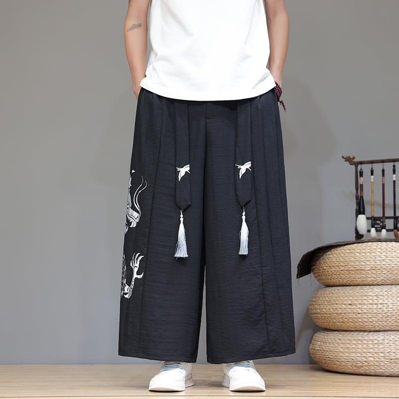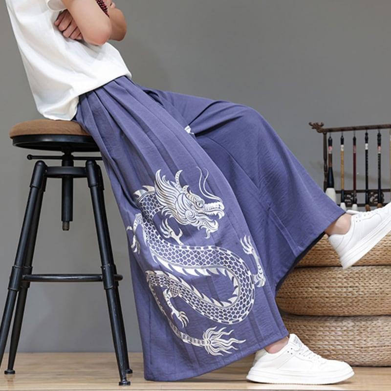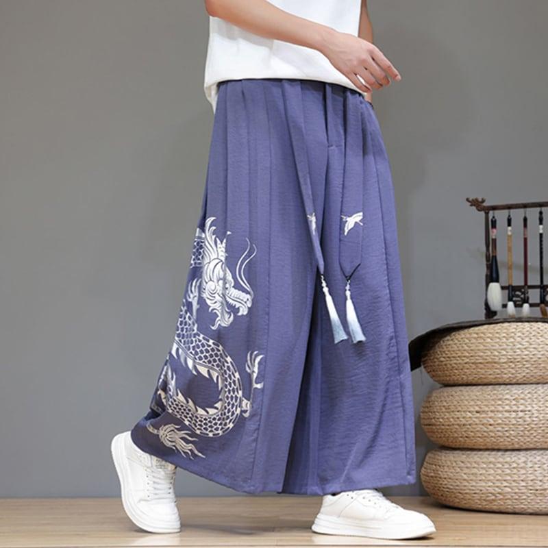 5color ガウチョパンツ カジュアルパンツ ボトムス 男女兼用 メンズ 龍紋
