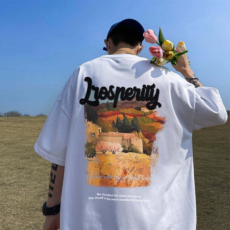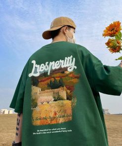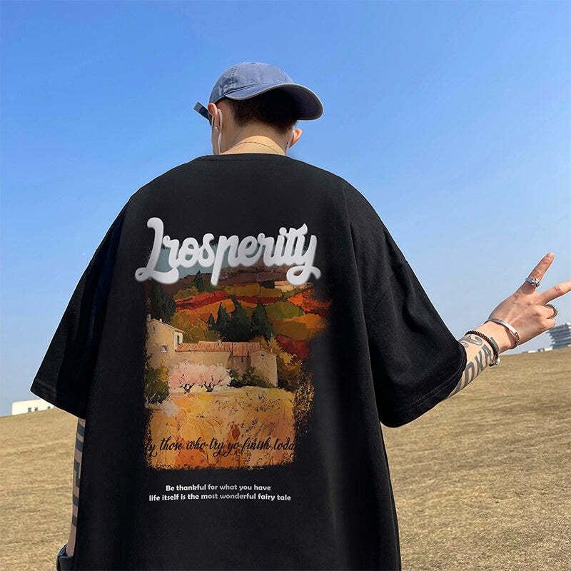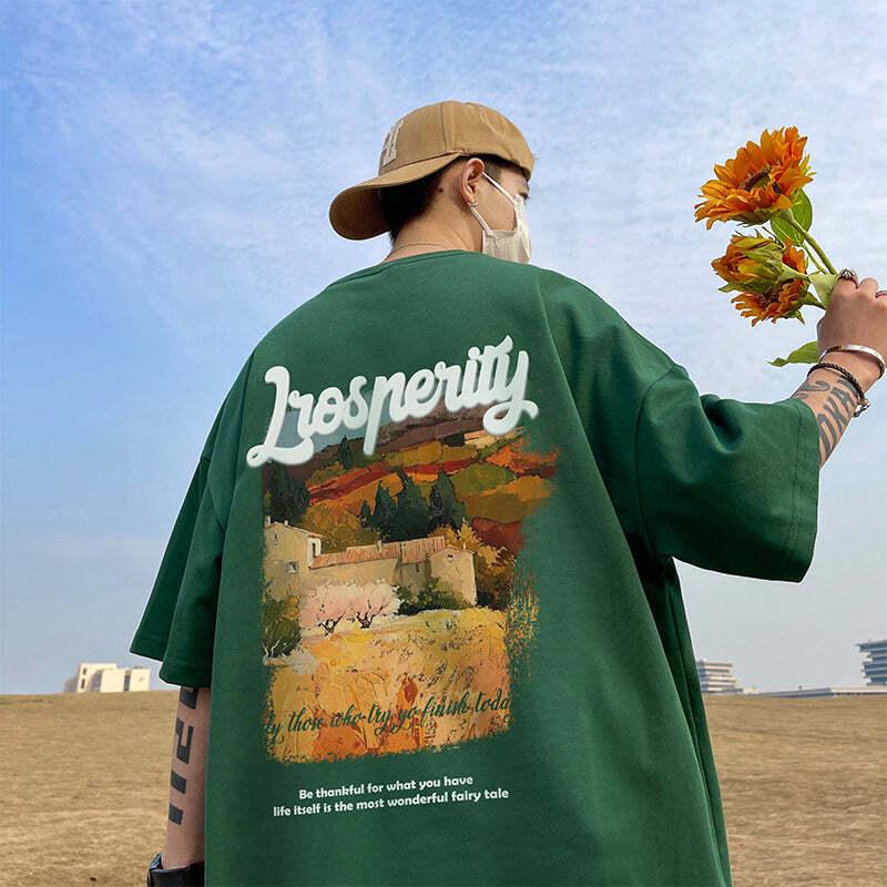 6color トップス 半袖 男女兼用 メンズ 大きいサイズ コットン 油絵風 黒 緑 白