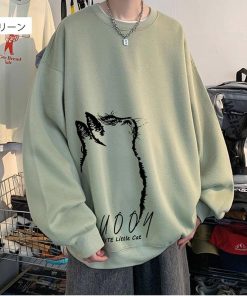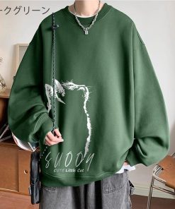 8color 長袖トップス スウェット 男女兼用 メンズ 大きいサイズ 猫 ねこ ネコ 黒 白 青 緑 赤