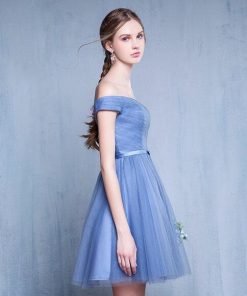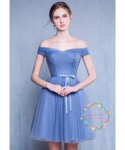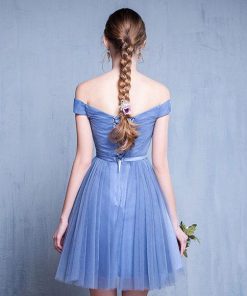 Aラインドレス パーティードレス カラードレス カクテルドレス 発表会 演奏会 ミニドレス フォーマル ブルー オフショルダー ブライズメイドドレス シンプル