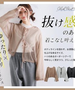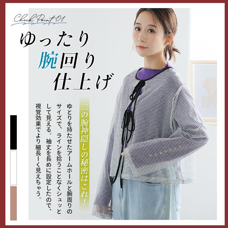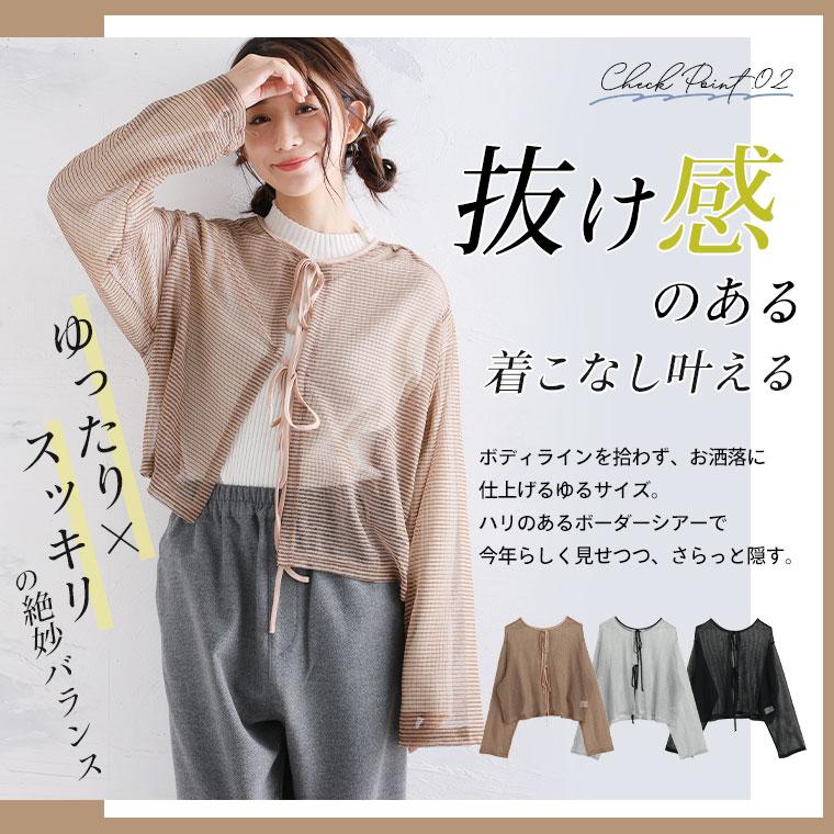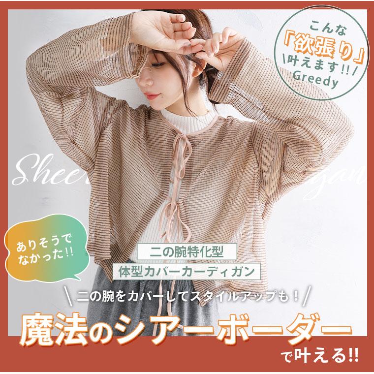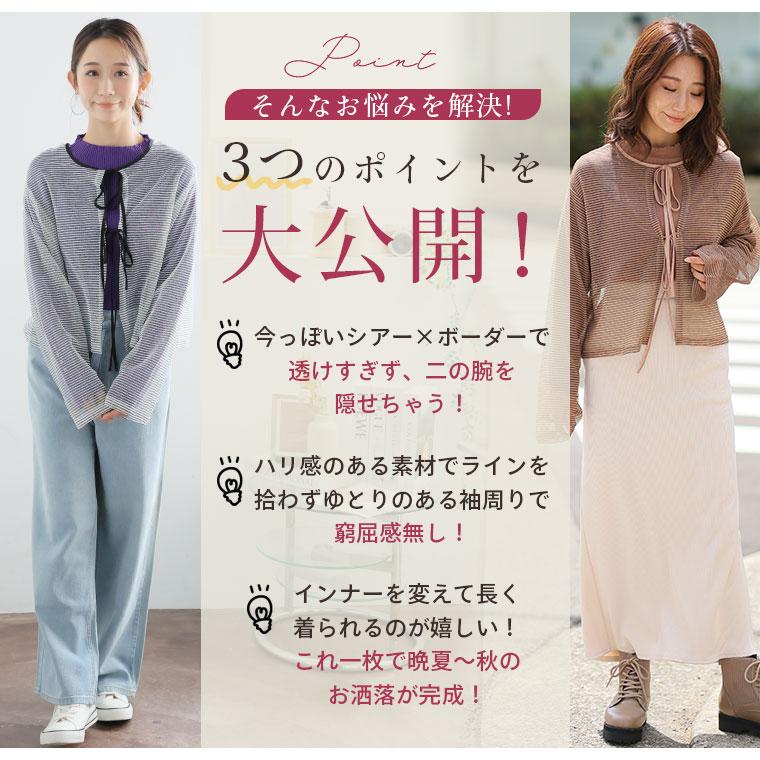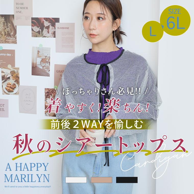 A HAPPY MARILYN 大きいサイズ レディース カーディガン 適度な透け感で二の腕隠し ボーダー シアー オリジナル トップス カーデガン カーデ 羽織り