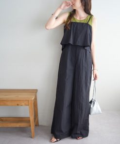 大きいサイズ レディース パンツ サロペットパンツ オールインワン カットジョーゼット ストレッチ LL 3L 4L 5L 6L