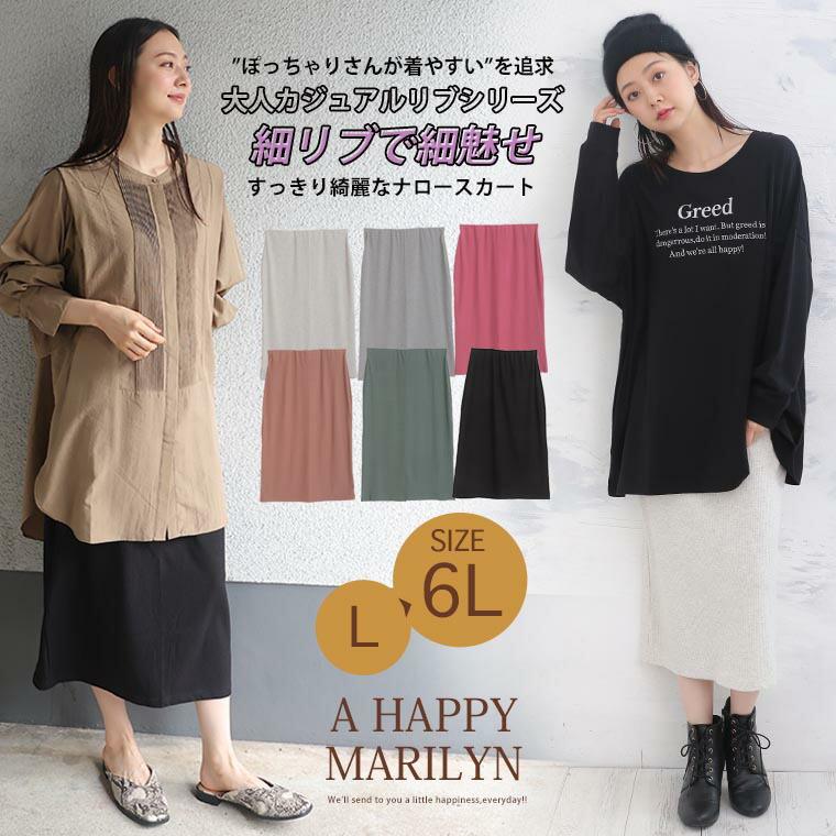 A HAPPY MARILYN 大きいサイズ レディース スカート 大人カジュアル リブシリーズ ナロースカート オリジナル ボトムス タイトスカート LL 3L 4L 5L 6L 秋 秋物 秋冬