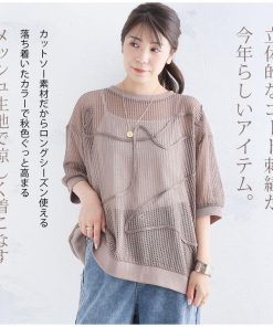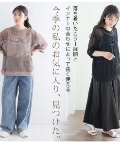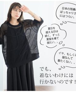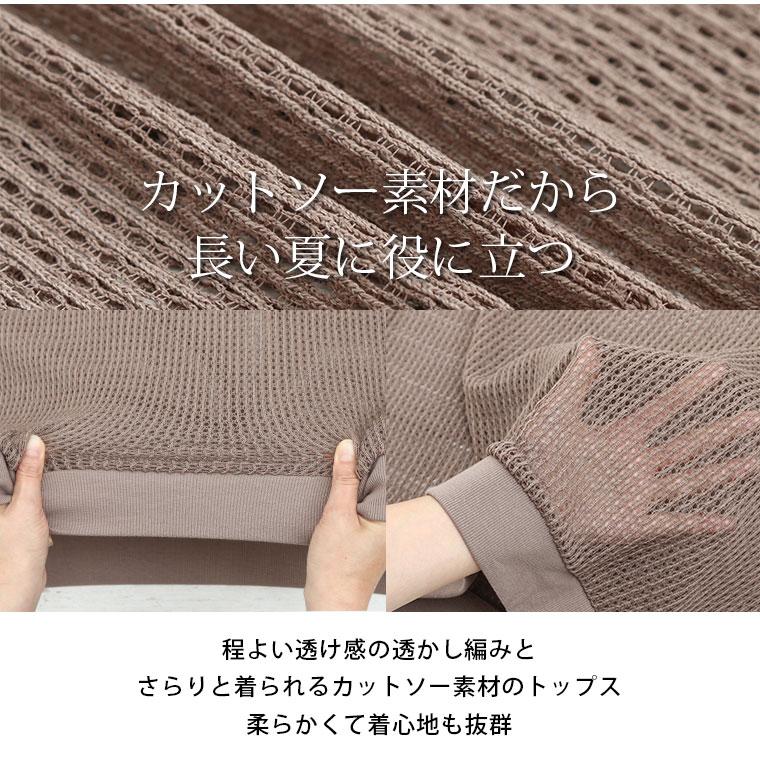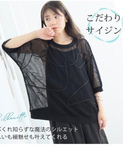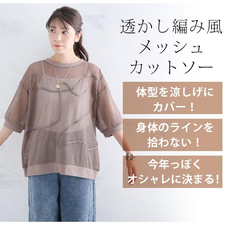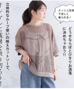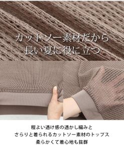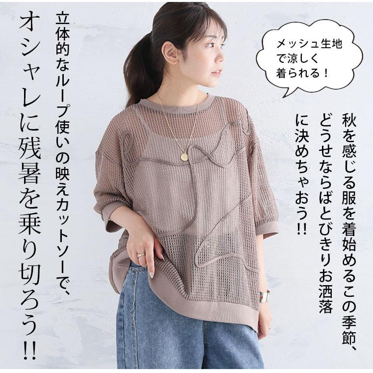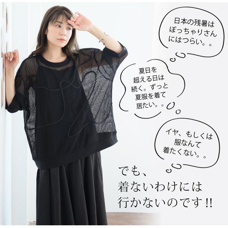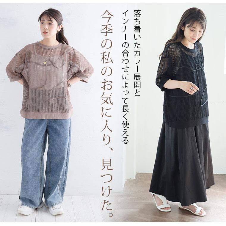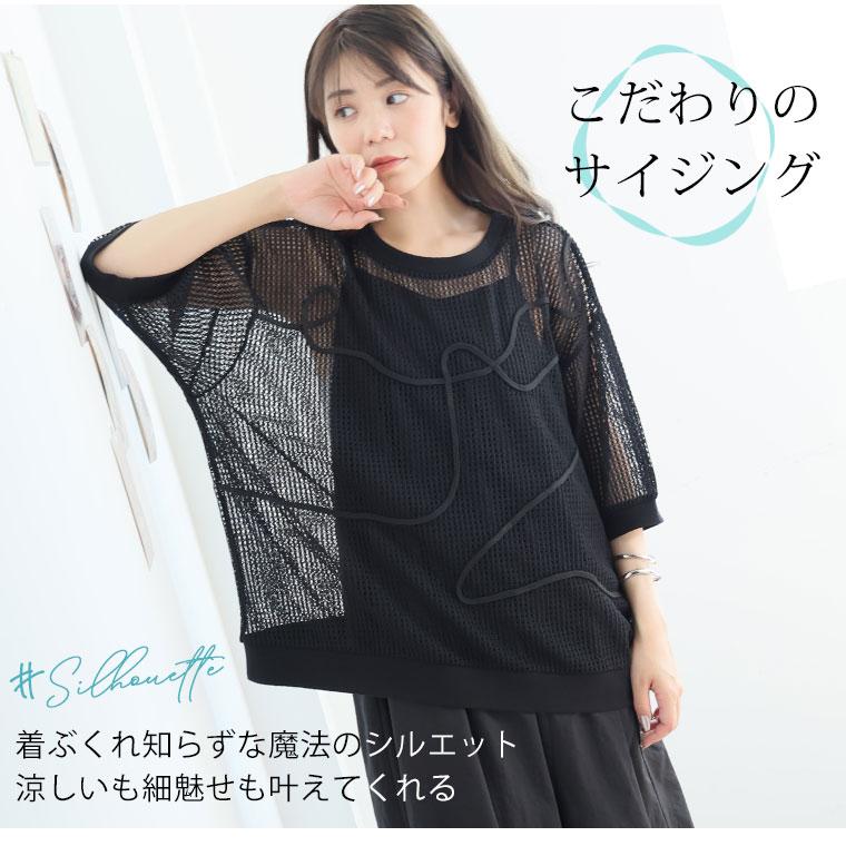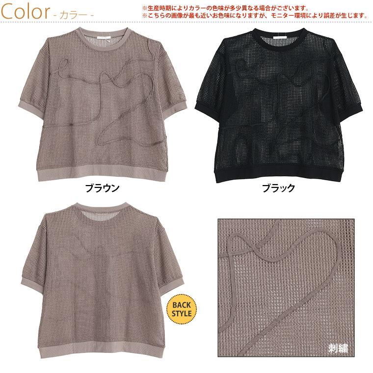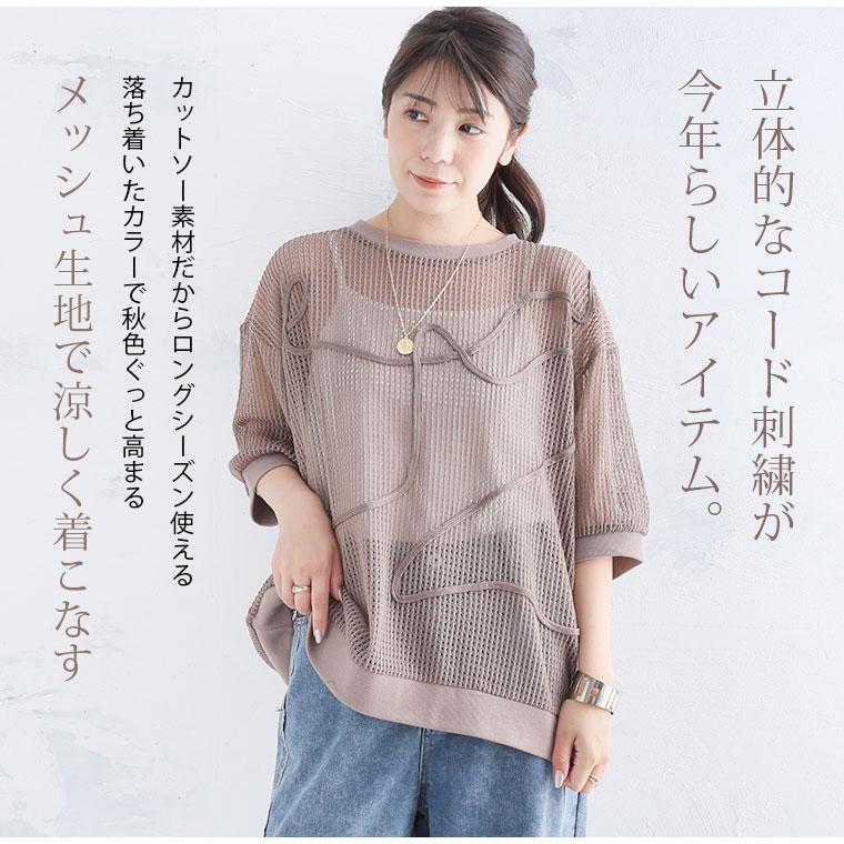 涼しく着こなすコード刺繍シアーカットメッシュトップス