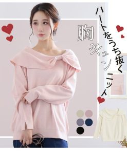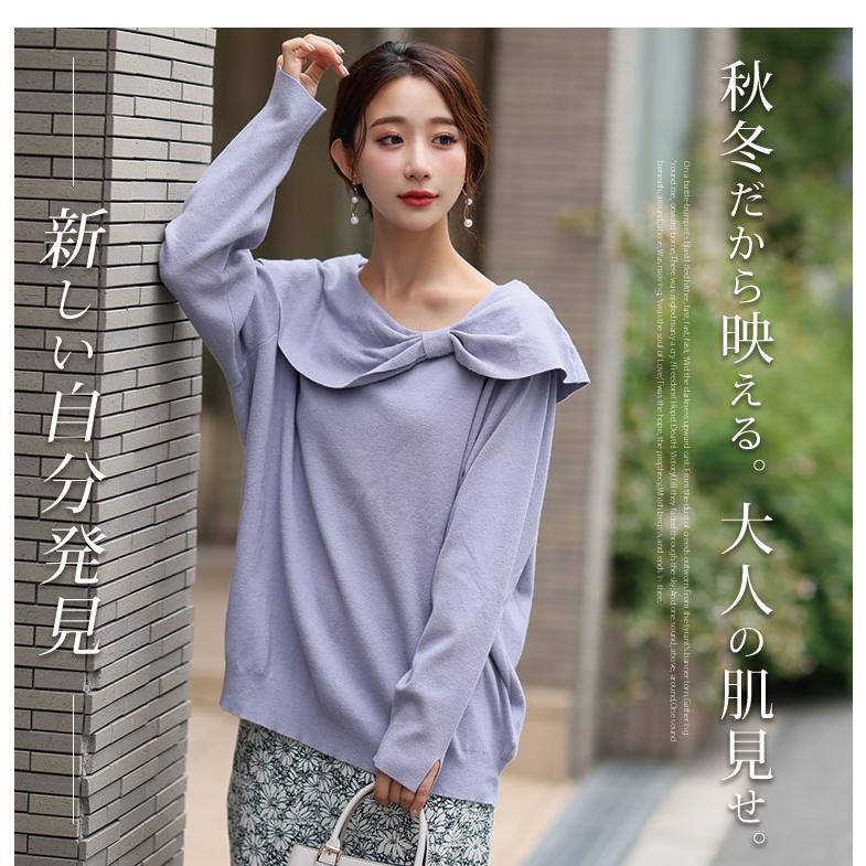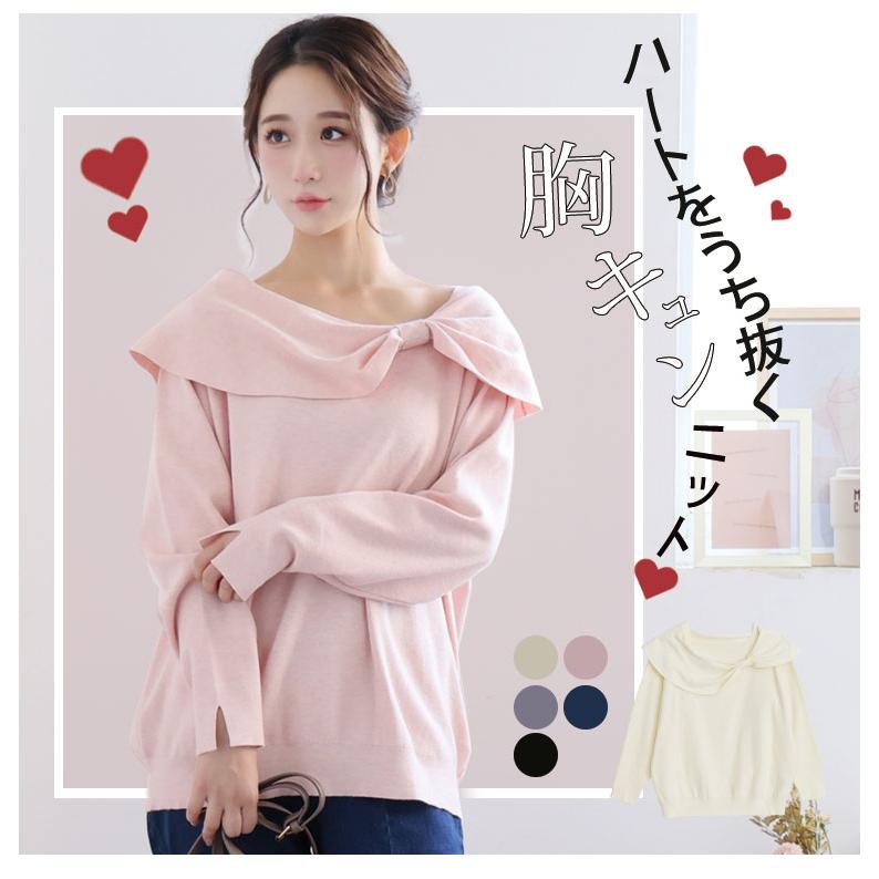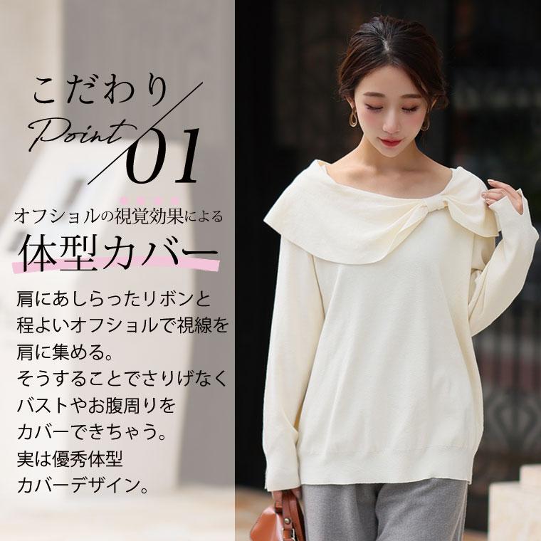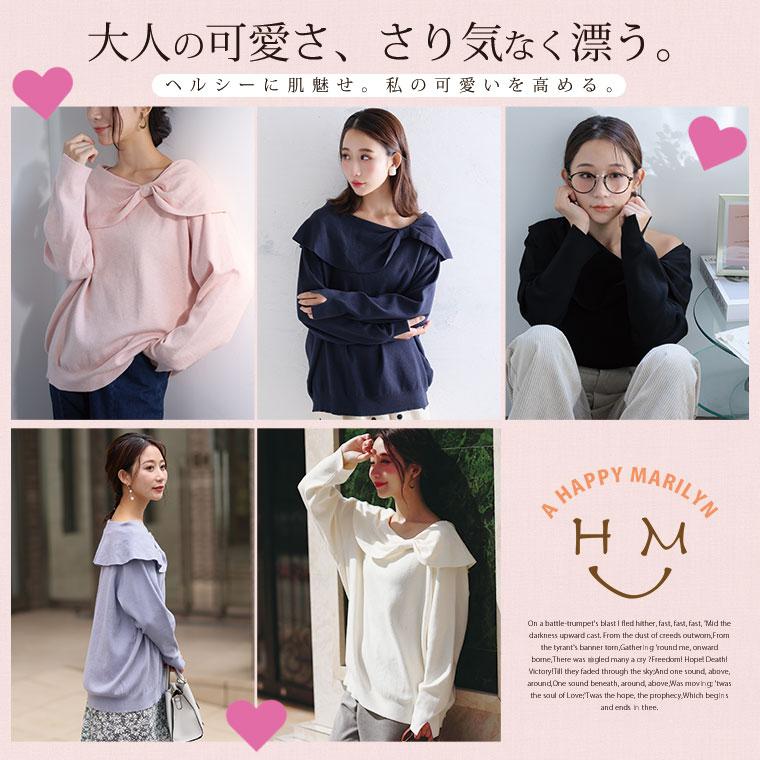 A HAPPY MARILYN 大きいサイズ レディース トップス ラク可愛 無敵トップスシリーズ 肩見えすぎない オフショル リボンニットトップス オリジナル ニット セーター LL 3L 4L