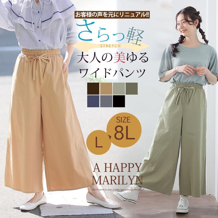 A HAPPY MARILYN 大きいサイズ レディース パンツ さら軽ストレッチ リラックス ワイド イージーパンツ オリジナル ボトムス ワイドパンツ ルーズパンツ LL 3L 4L 5L