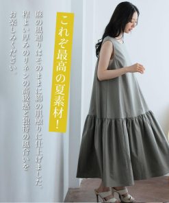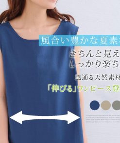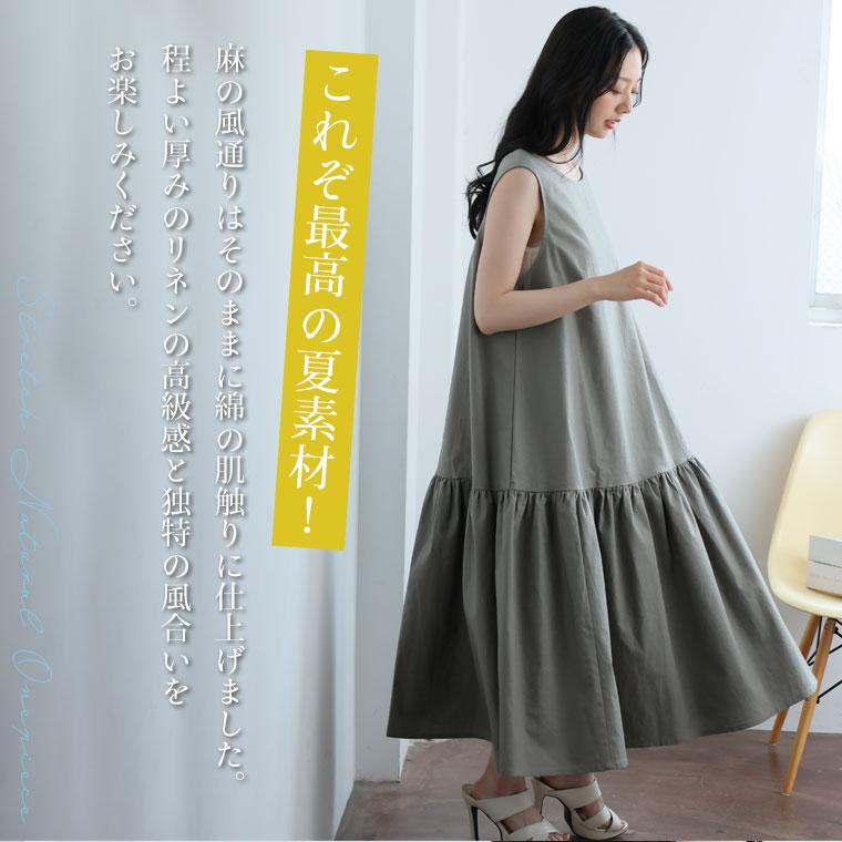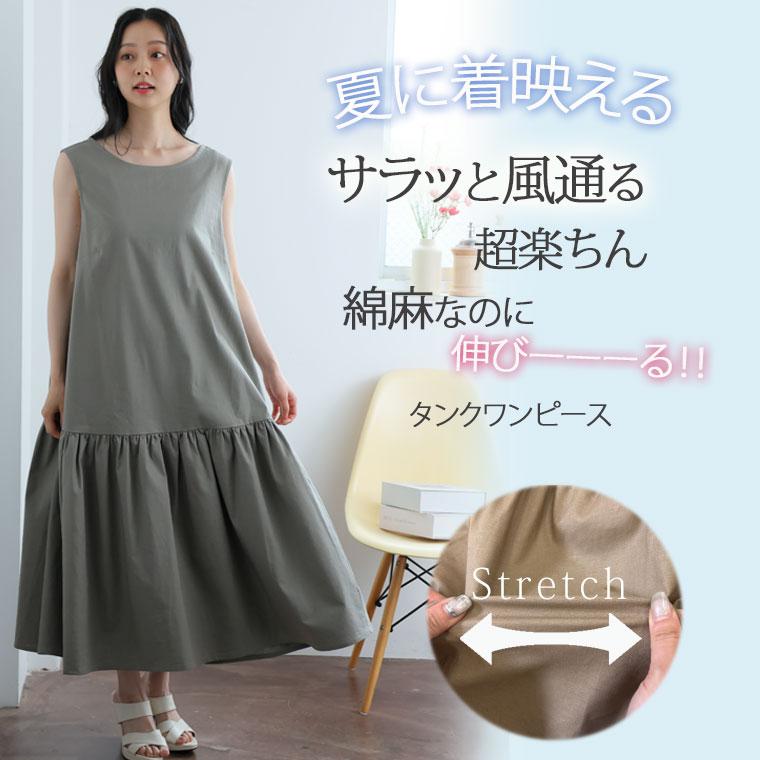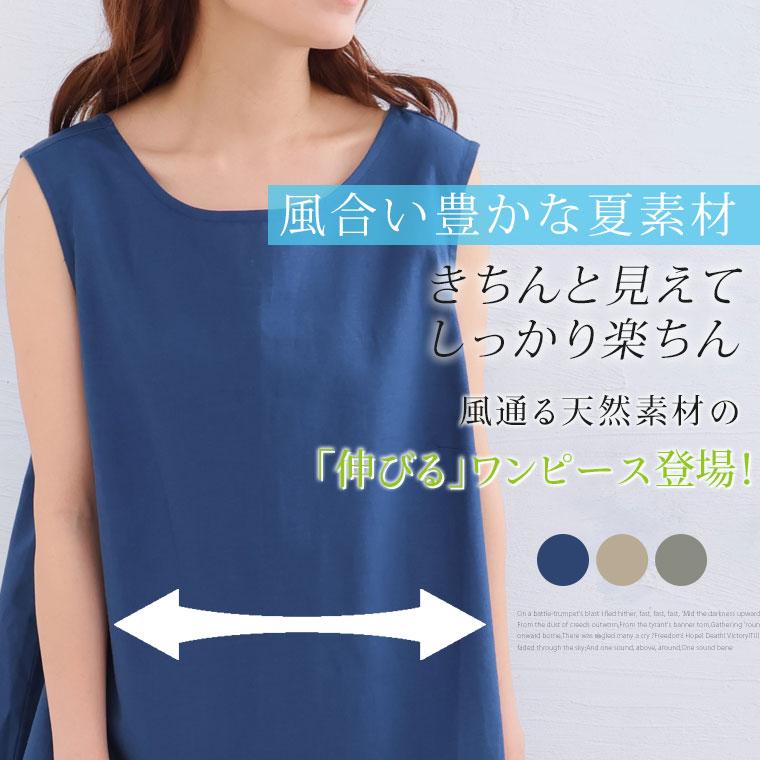 A HAPPY MARILYN 大きいサイズ レディース ワンピース 伸びる綿麻 ノースリワンピース オリジナル ワンピ デザインワンピ LL 3L 4L 5L 6L 夏 夏物 夏服 夏用