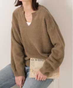 ad thie ニット セーター キーネック・ふんわり シャギーニット レディース