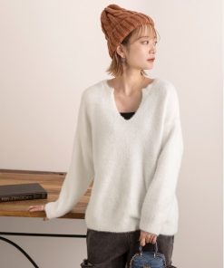 キーワード:ニット セーター レディース vネック 長袖 無地