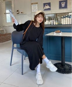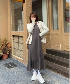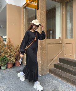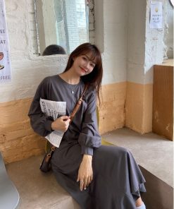 キーワード:ワンピース フレア ロング 長袖 無地 デート プチプラ ベーシック 紅葉 秋 春 大人カジュアル 定番