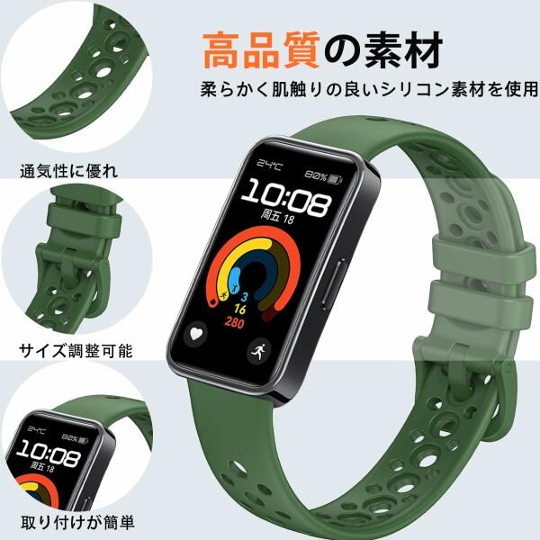 (Aeurfoc) 交換用バンド For Huawei Band 9 / Huawei Band 8 対応 交換ベルトスポーツ 通気性柔 軟なシリコン 防水 防汗 運動 シリコンベルト 交換リストバンド For Huawei Band 9 / Huawei Band 8 対応 – グリーン