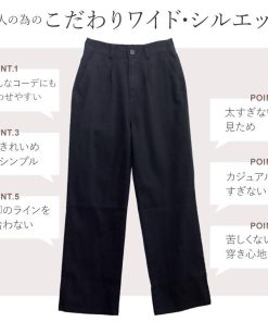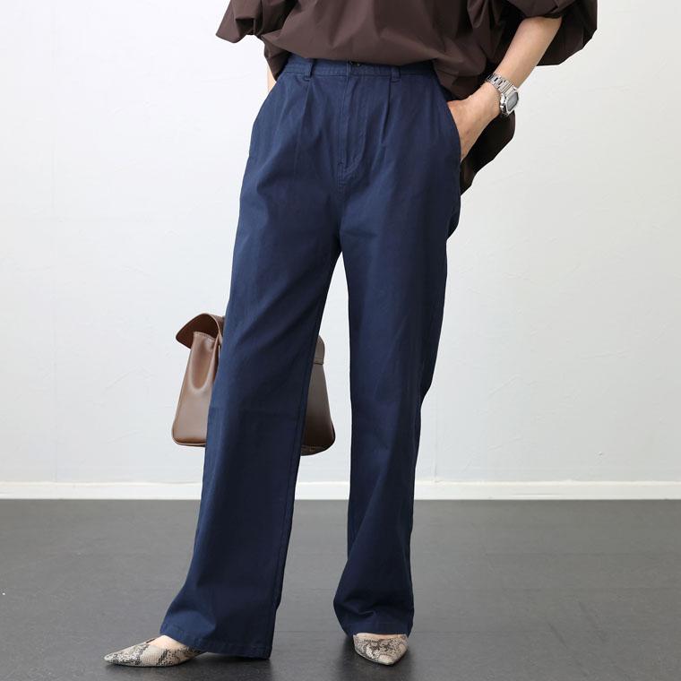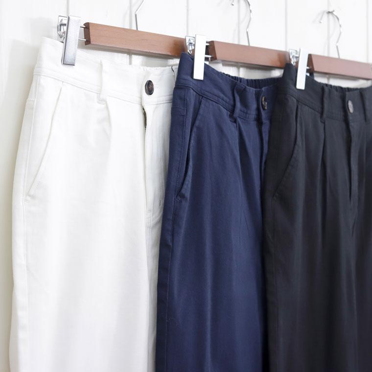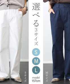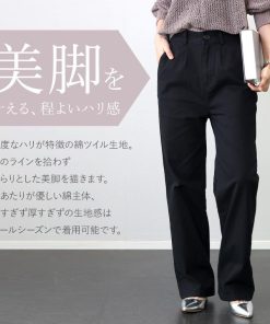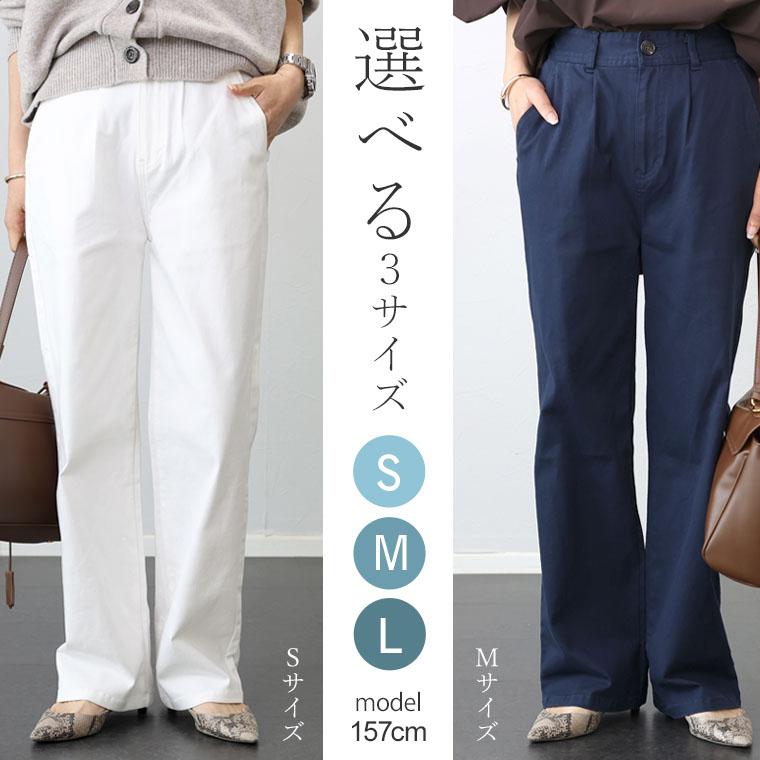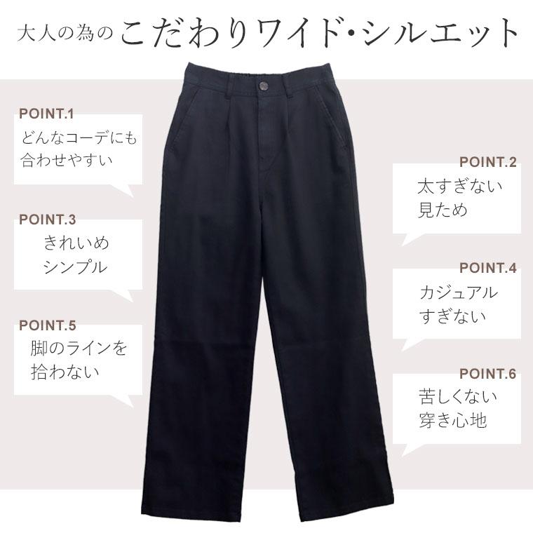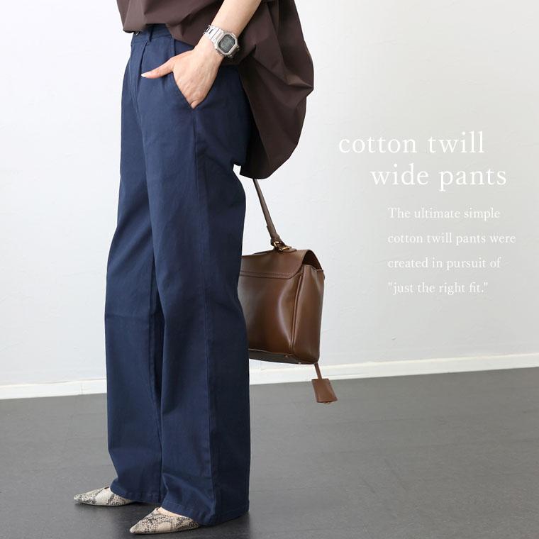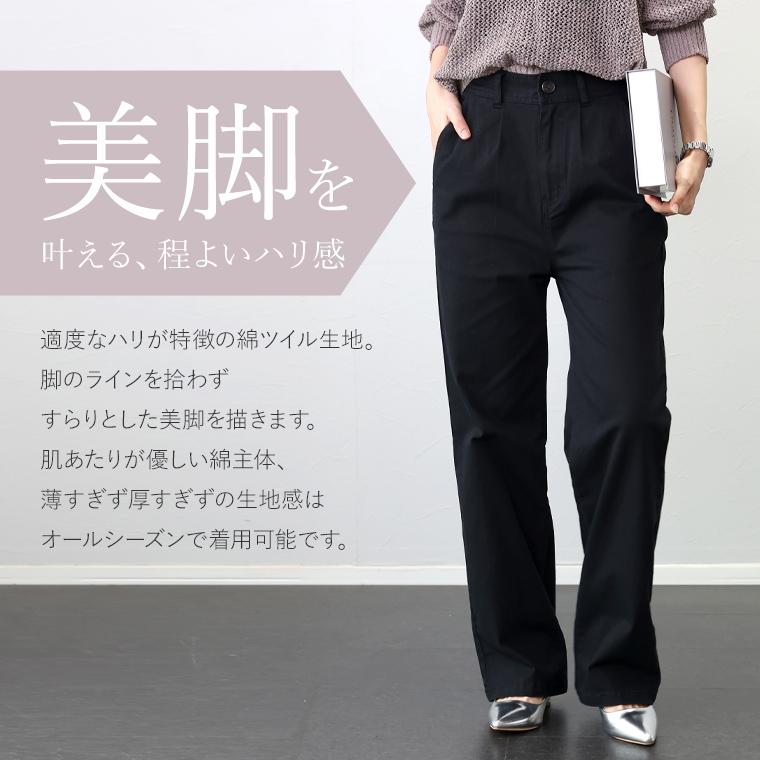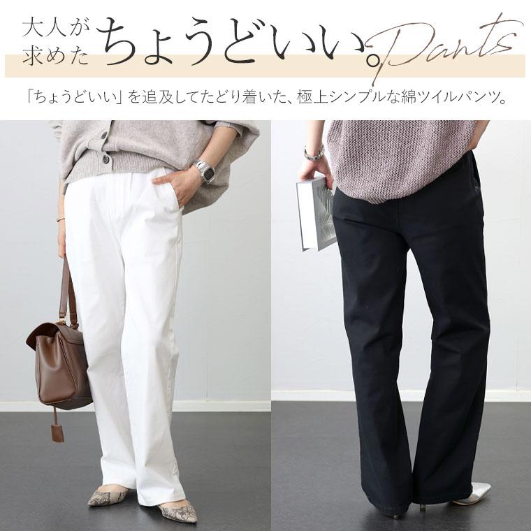 パンツ ボトムス ワイド ストレート セミワイド 綿ツイル ウエストゴム ベーシック 美脚 無地 30代 40代 大人 春夏秋冬 レディース