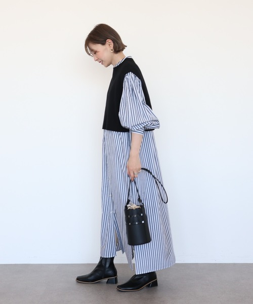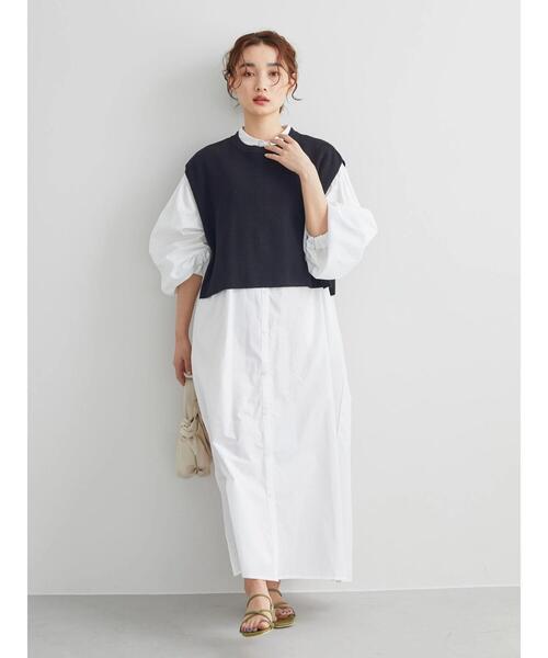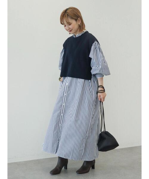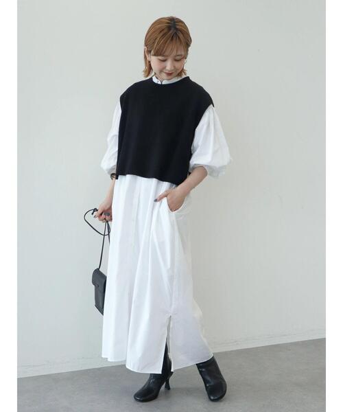 参考商品名:SETニットベスト+ギャザーシャツワンピース