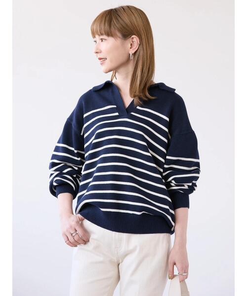 キーワード:ニット セーター レディース ボーダー 長袖 バーベキュー ベーシック ホワイトデー ワーク 公園 春 大人カジュアル