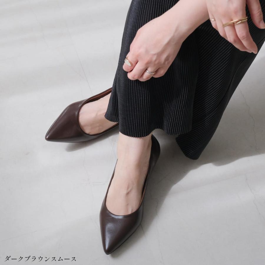 ローヒールでありながらポインテッドで大人っぽくきれいめなフォルムで美脚に見せてくれます。