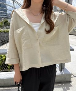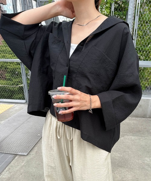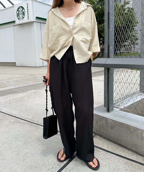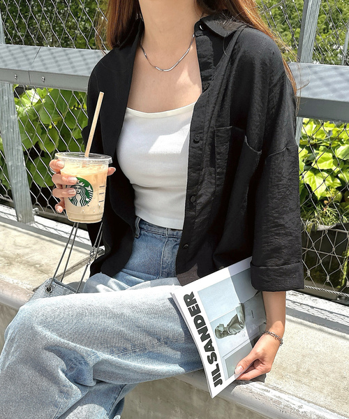 参考商品名:リネンブレンド短丈シアーシャツブラウス