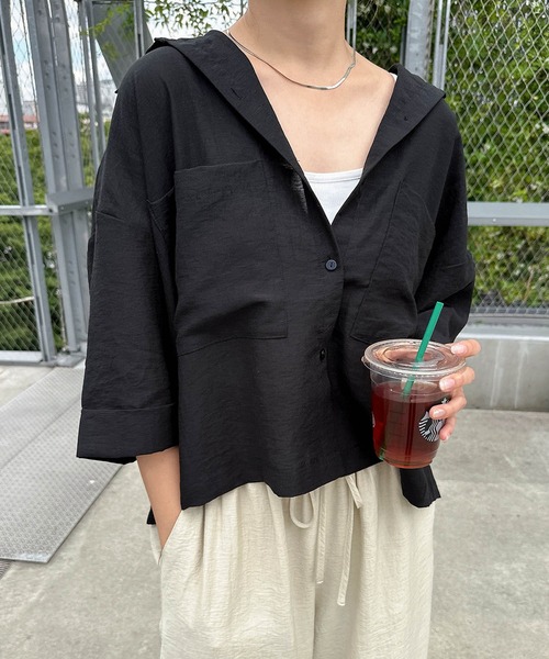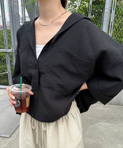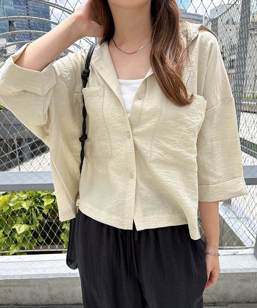 キーワード:ブラウス シャツ レディース レギュラーカラー 七分袖 五分袖 無地 夏 春