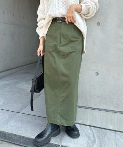 キーワード:スカート タイト ミモレ丈 無地 WEB限定 アウトドア ピクニック レジャー プチプラ ミリタリー 秋 春 大人カジュアル 定番 旅行