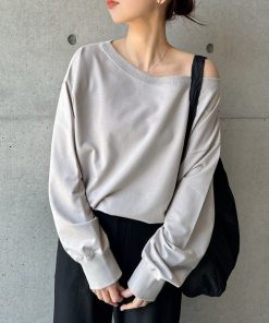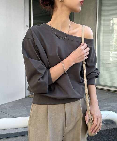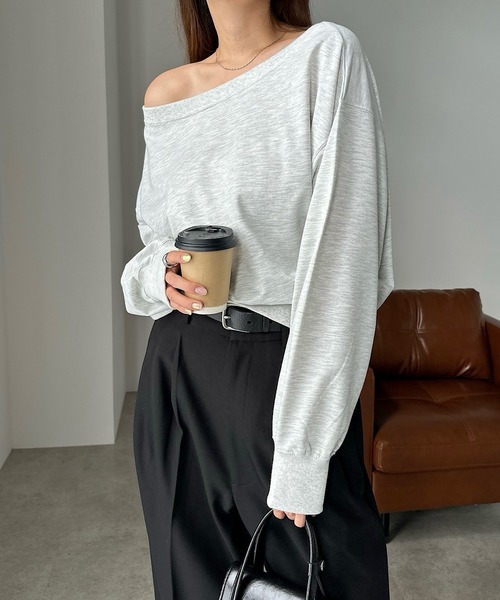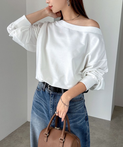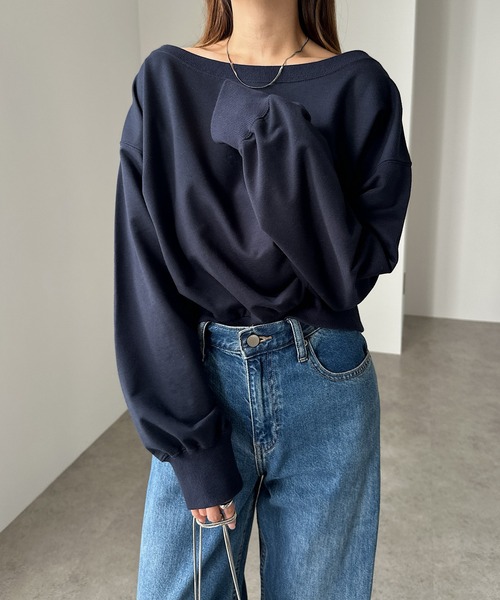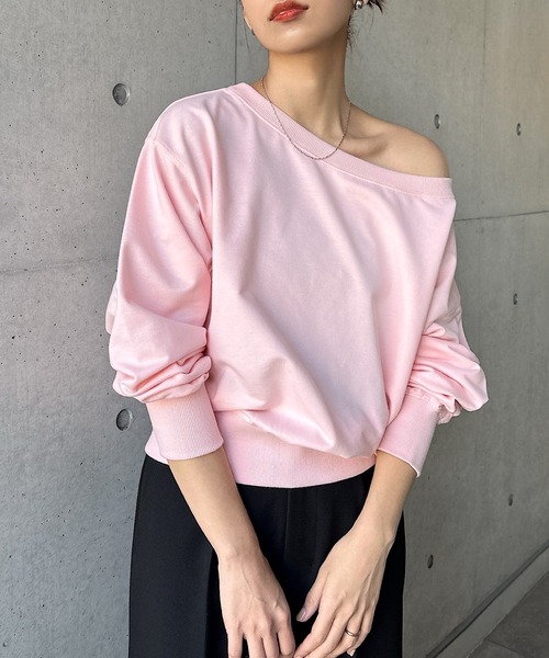 商品名:【新色追加】ボリューム袖オフショルダースウェットトップス