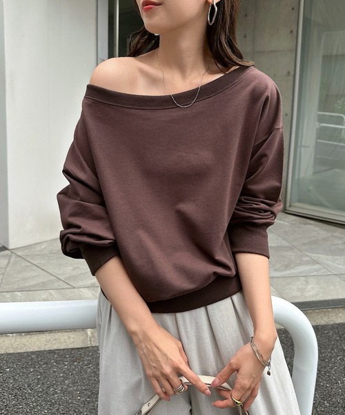 andme トレーナー スウェット 「新色追加」ボリューム袖オフショルダースウェットトップス レディース