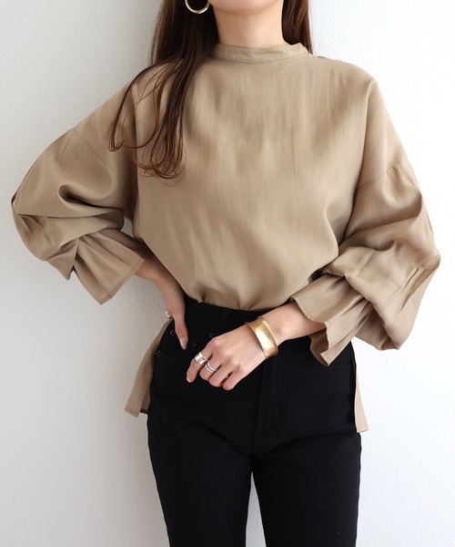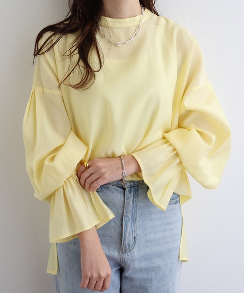 andme ブラウス シャツ ブライトシアー長袖シャツブラウス レディース