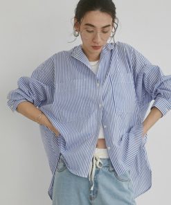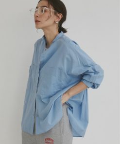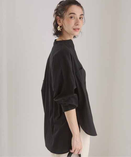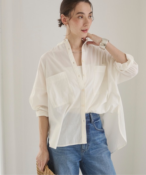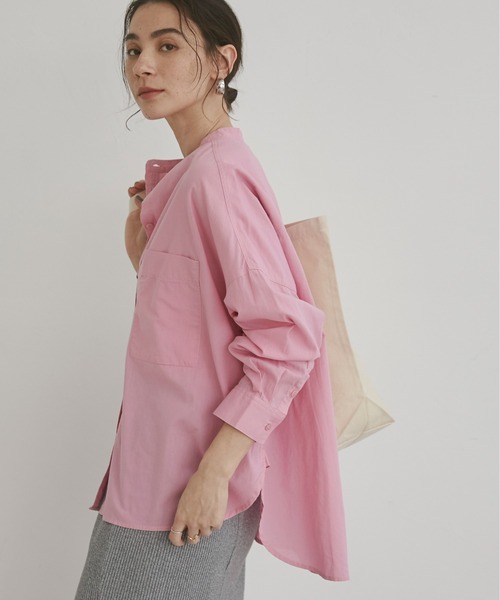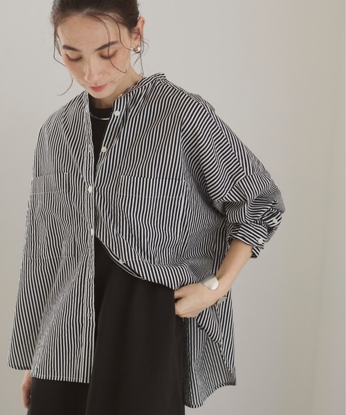 商品名:シアー オーバーサイズ バンドカラー シャツ / ストライプ / 無地