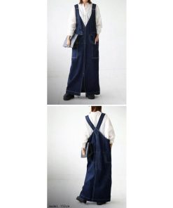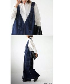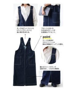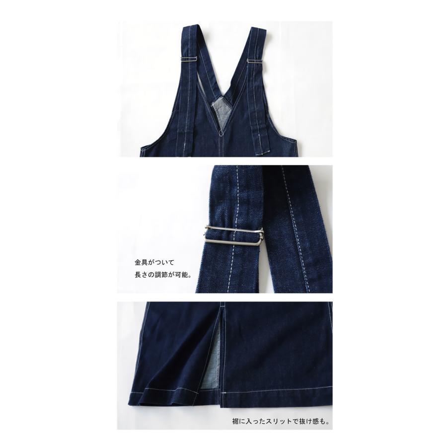 ×メール便不可!※詳細をPCサイトよりご購入前にご確認下さいませ。少し長めの丈感とスリットが大人仕様。サロペットデニムスカートの登場です。
