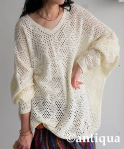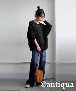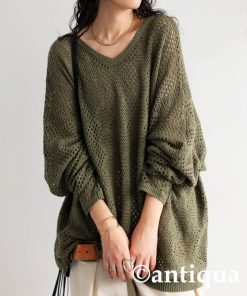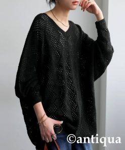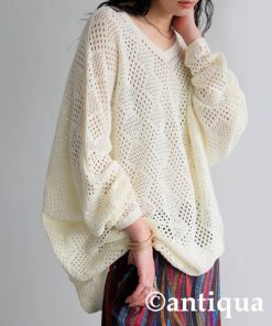 antiqua ニット セーター 透かし編みドルマンニット レディース