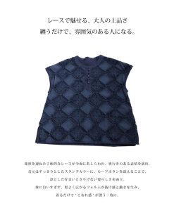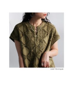 全面に立体的な刺繍レースを施した高見えトップス。すっきりとしたバンドカラー(スタンドカラー)とループボタンが上品な印象を引き立て、クラシカルな可愛らしさもプラス。サイドスリット入りでイン・アウトどちらの着こなしも決まり、体型カバーにも◎。素材には柔らかなインド綿を使用し、程よいハリ感と透け感が春夏にぴったり。デイリーからお出かけまで幅広く活躍する、大人のための一枚です。