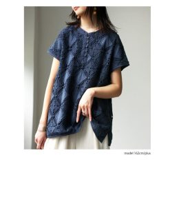 antiqua レースシャツ レディース トップス 半袖 インド綿 送料無料・500ptメール便可