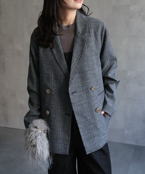 キーワード:ジャケット テーラードジャケット レディース ダブル チェック 無地 オケージョン デート トラッド パーティー ベーシック 秋 春 大人カジュアル