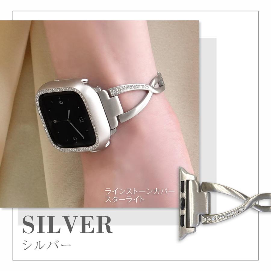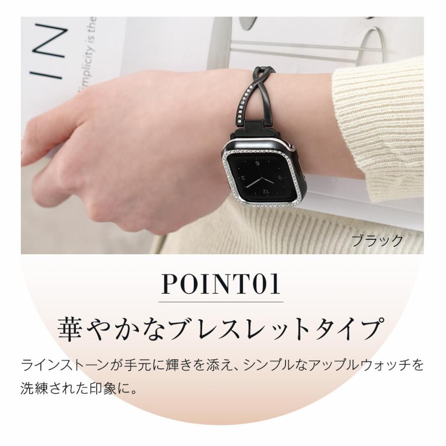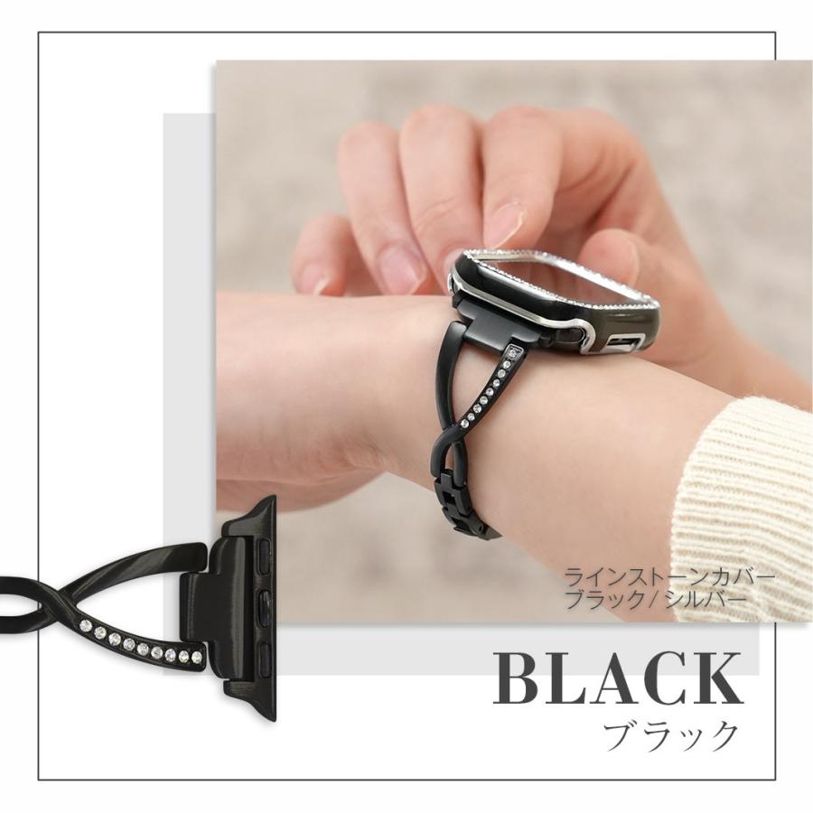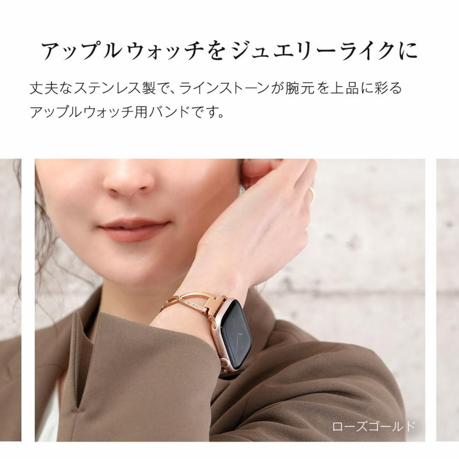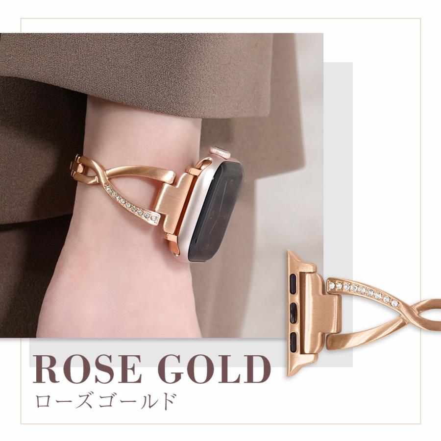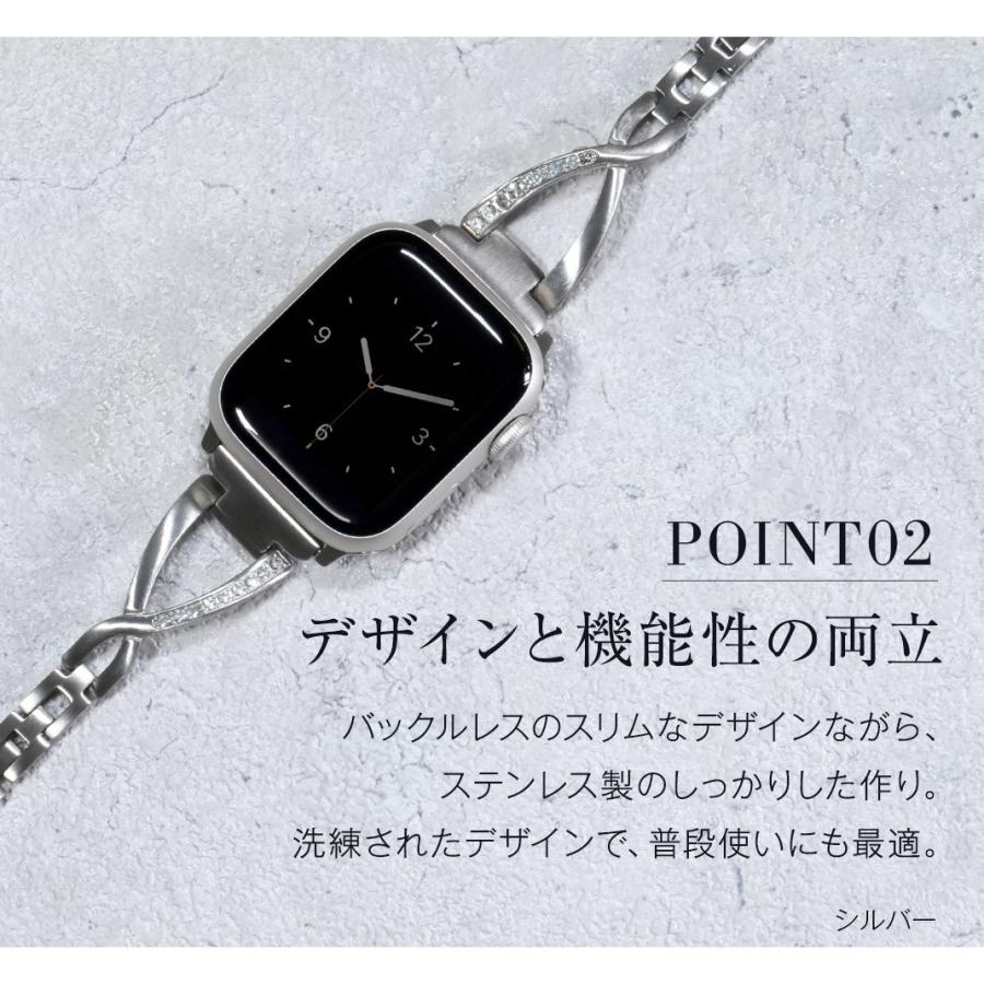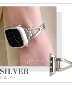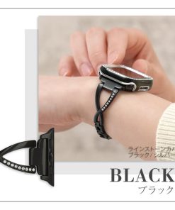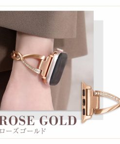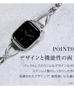 華奢なデザインにクロス部分のラインストーンによる華やかさが加わり、Apple Watchをジュエリー感覚で楽しむことができます。サイズ調整は専用器具不要で簡単に行えます。