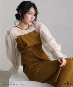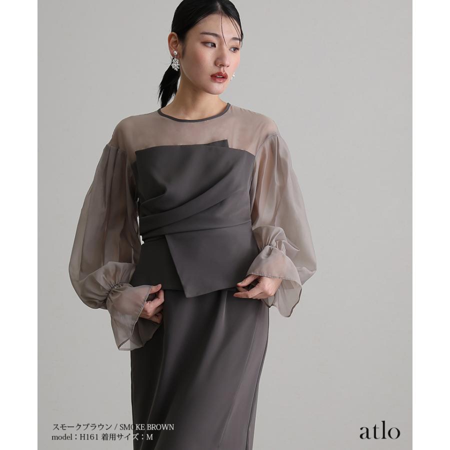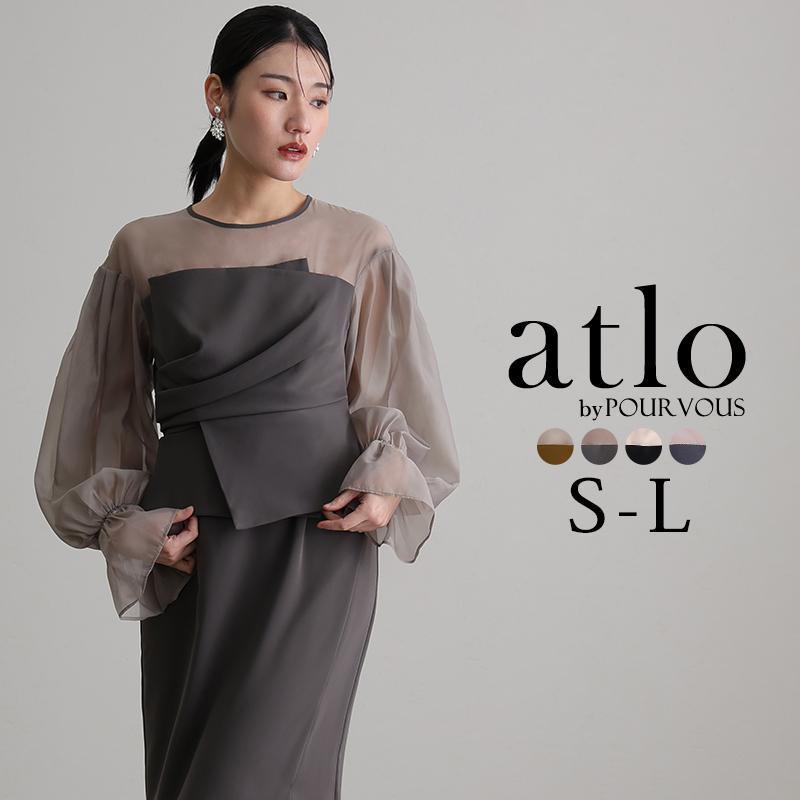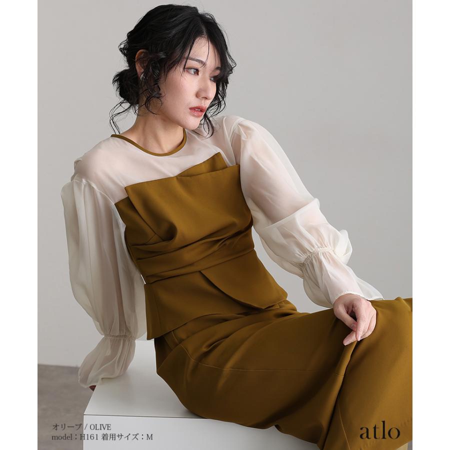 atlo ビスチェ ドレープ オーガンジー パーティードレス オケージョン ワンピース 結婚式 かっこいい 大きいサイズ 小柄 ドレス フォーマルドレス