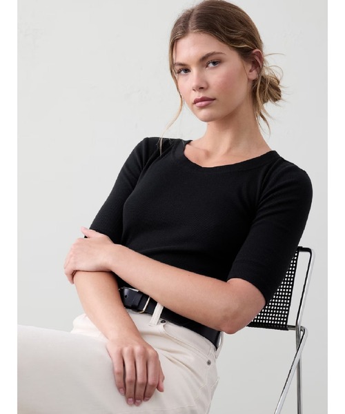 商品名:BANANA REPUBLIC FACTORY STORE リブエルボースリーブTシャツ