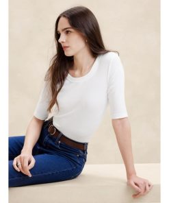 BANANA REPUBLIC tシャツ FACTORY STORE リブエルボースリーブTシャツ レディース