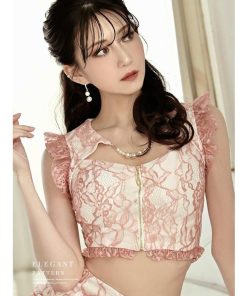 ☆【訳ありアウトレット】花柄レース品格スカートセットアップキャバドレス!可愛いミニスカートとフリル袖が印象的な一着です。