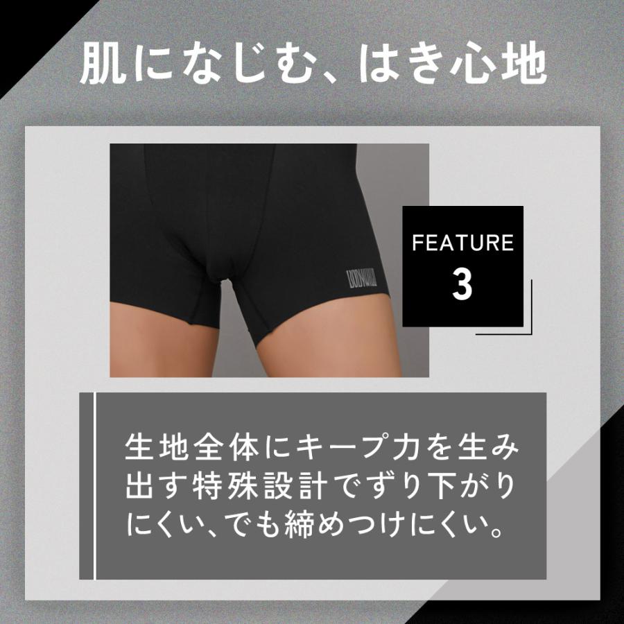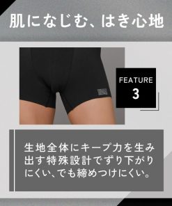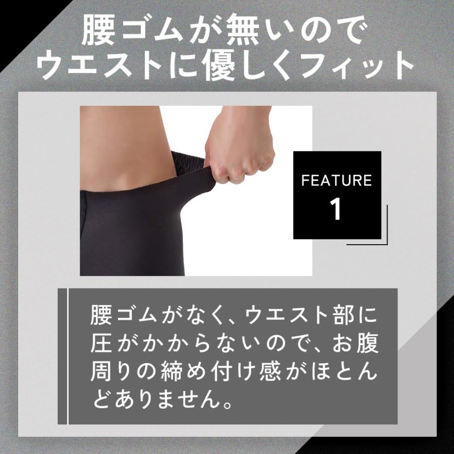 生地全体にキープ力を生み出す特殊設計でずり下がりにくく、締めつけにくい。